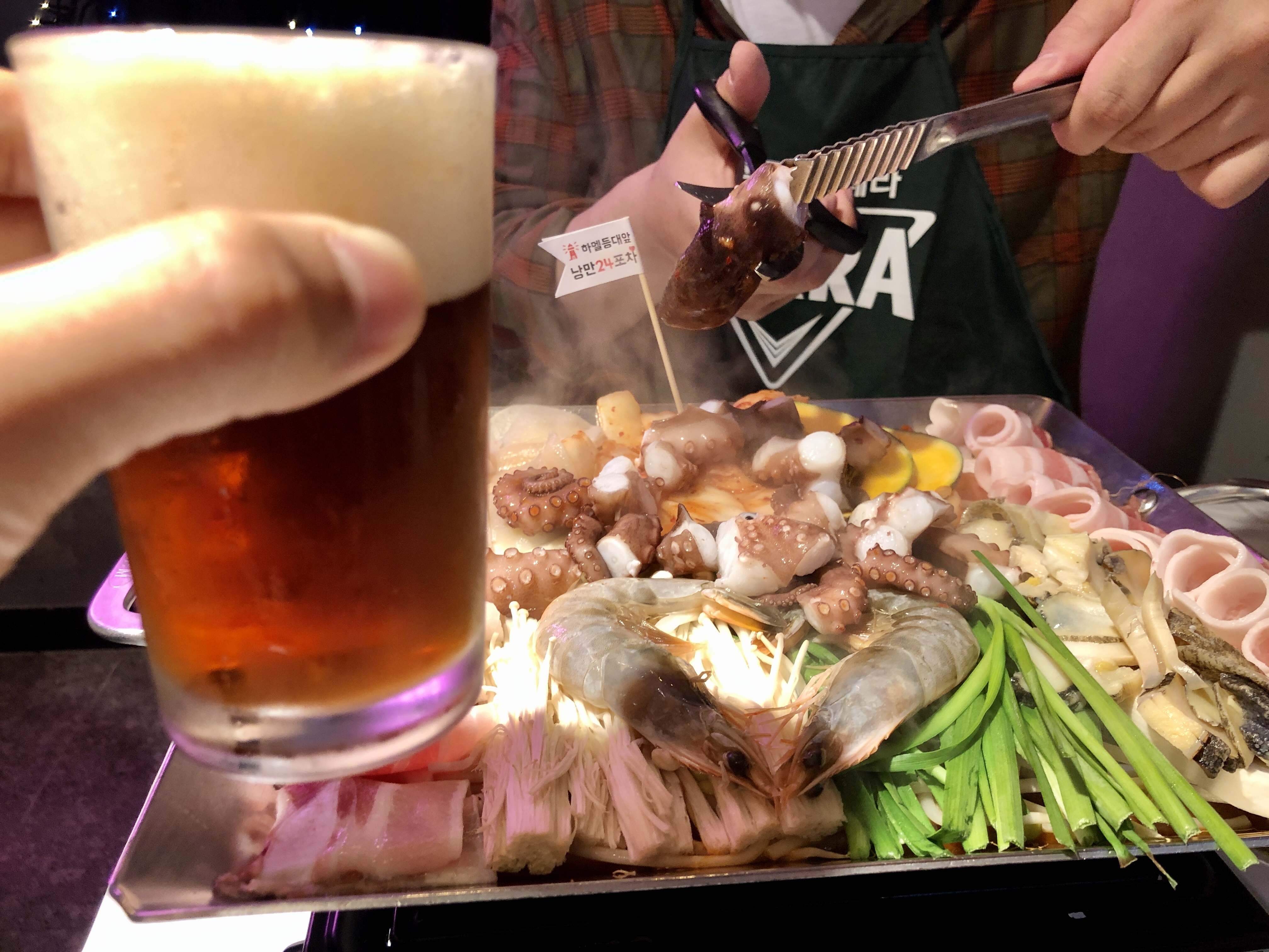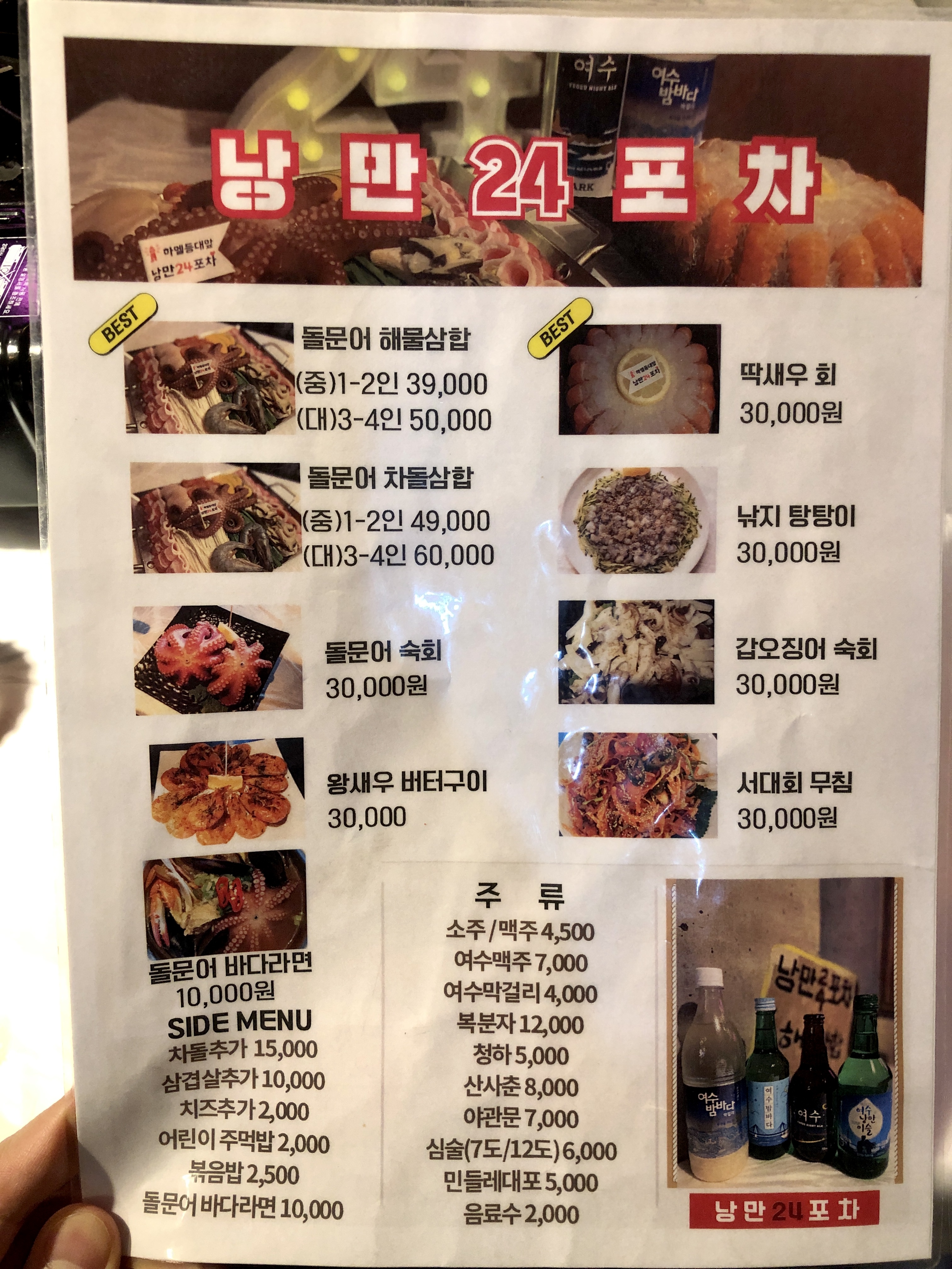 여수 여행와서 낭만포차 거리에 왔으니 유명한 여수 돌문어 해물 삼합을 안먹어 볼 수 없겠죠~?