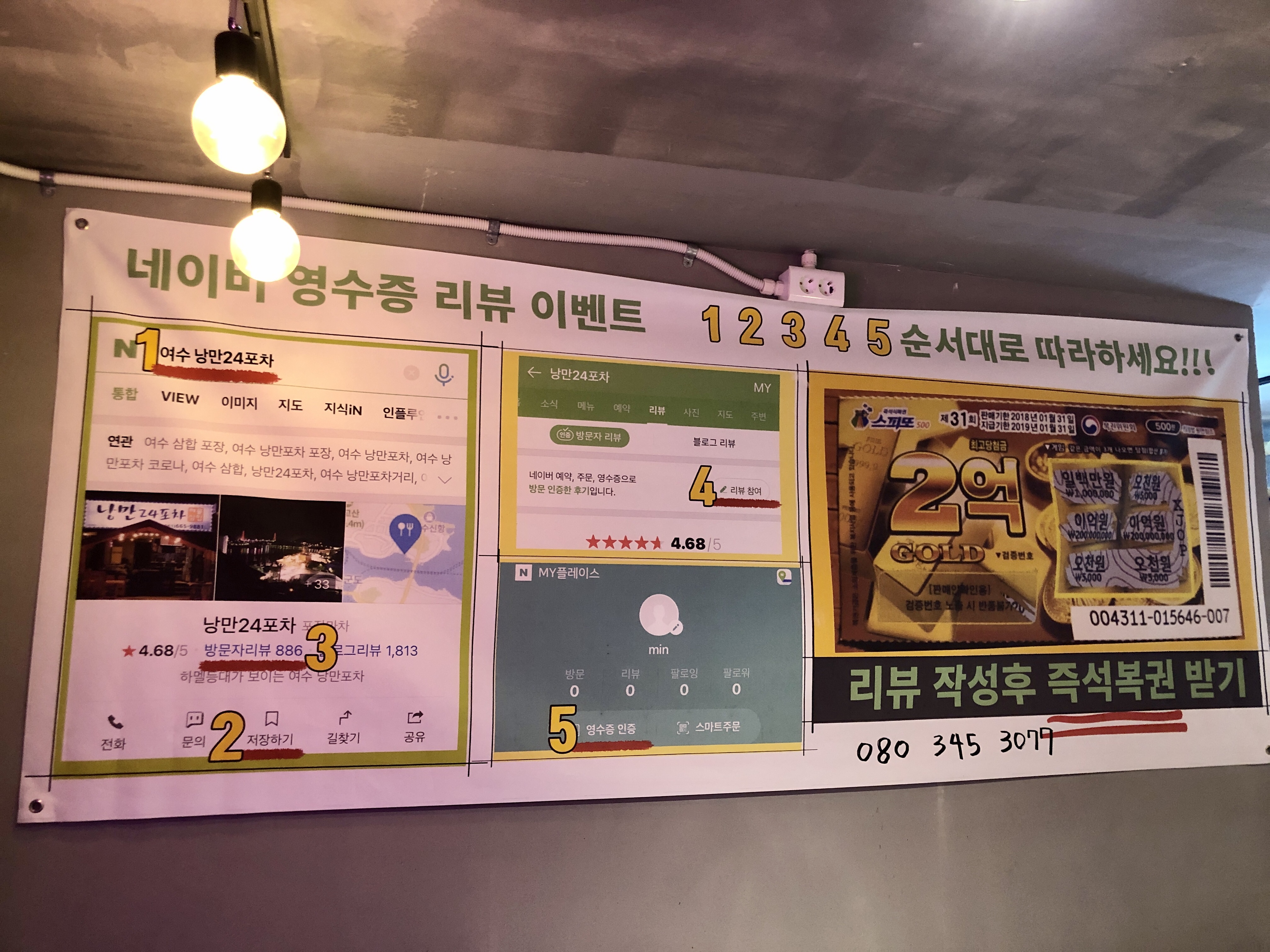 낭만24포차에서는 네이버 영수증 리뷰 이벤트도 하더라구요