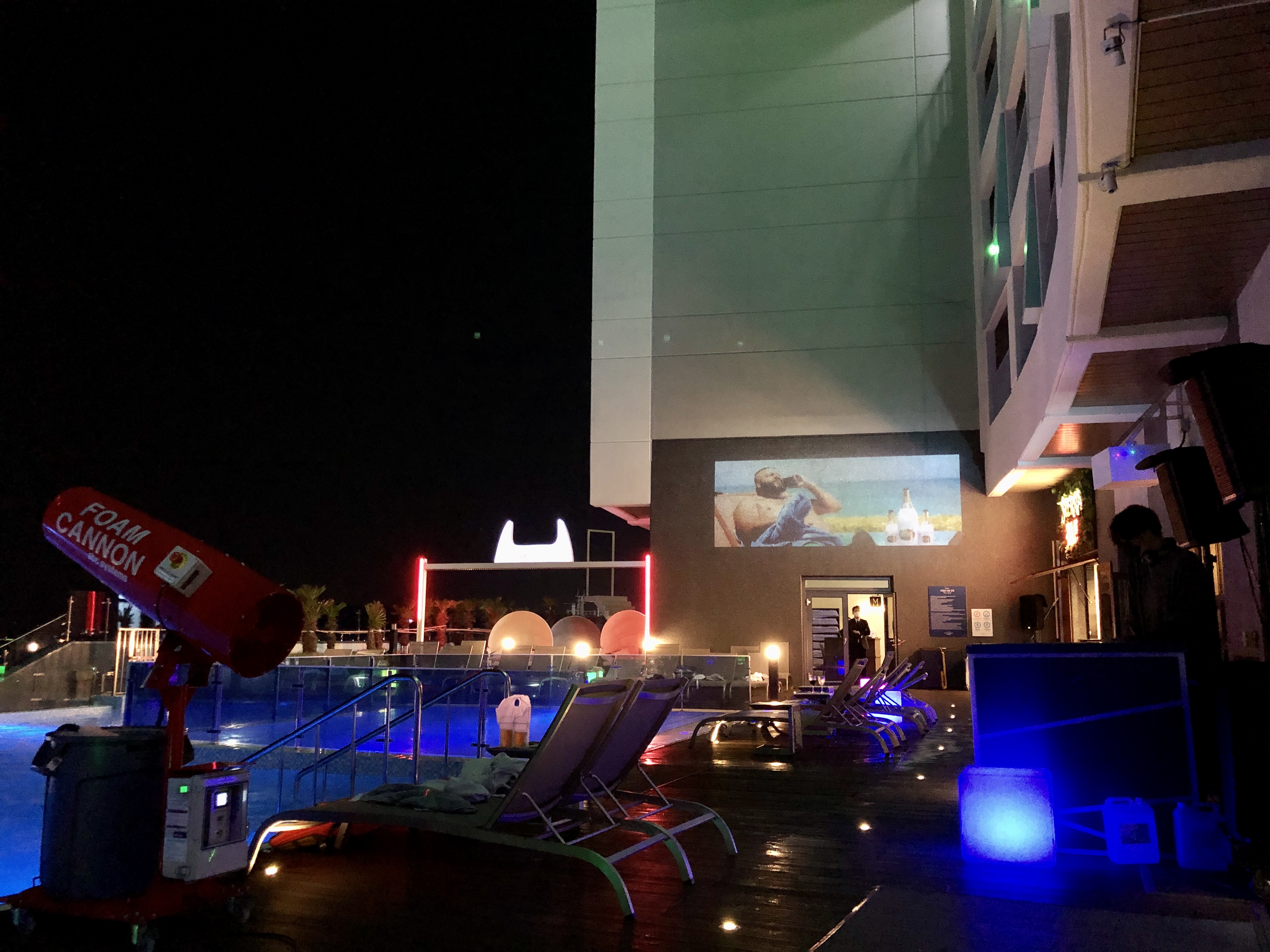 이렇게 유탑마리나 호텔에서 오션 인피니티풀 버블 풀파티를 즐겼습니다.