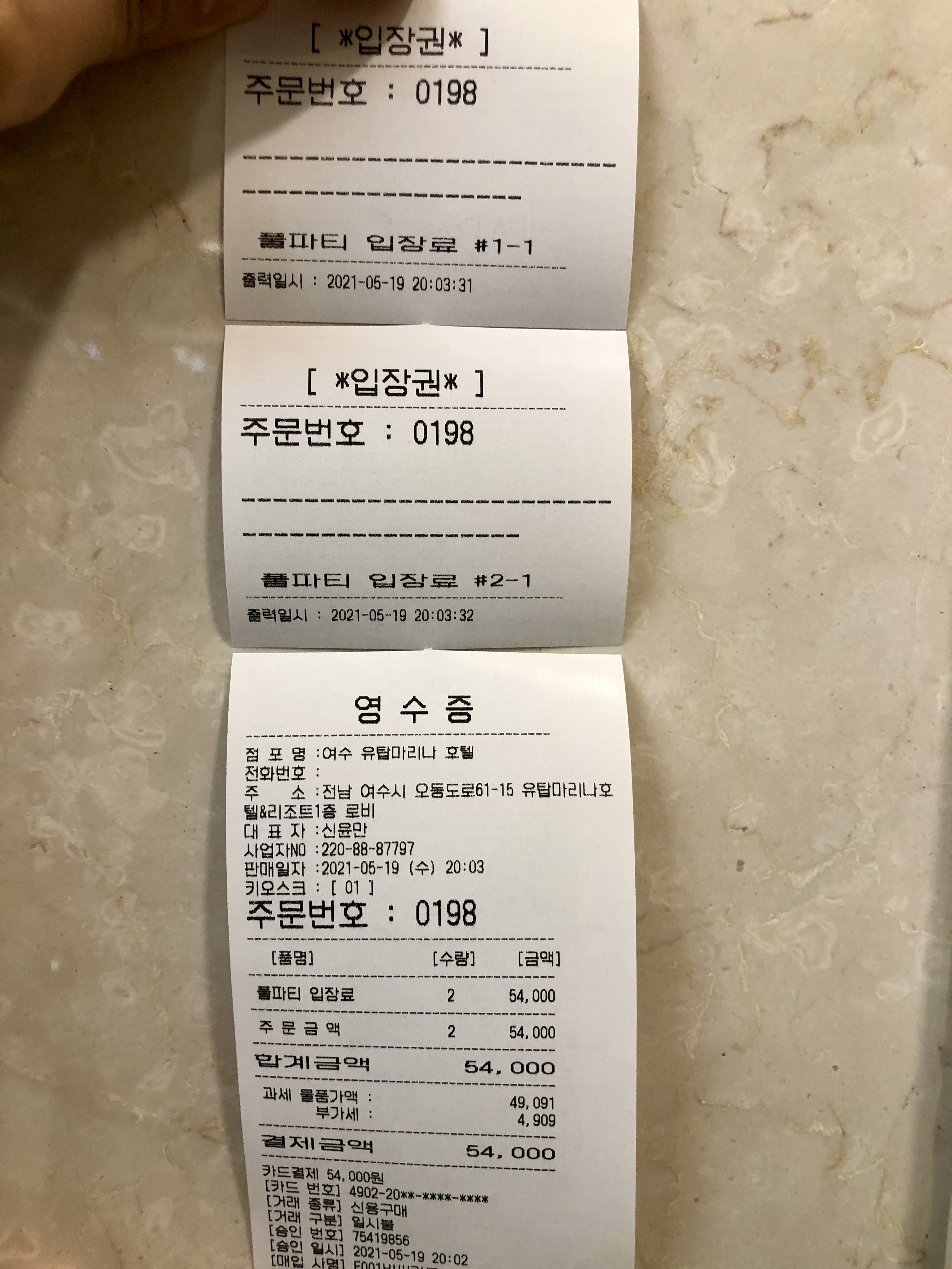 3층 풀파티 입장하는 장소에서도 입장권을 구매할 수 있지만, 1층의 키오스크를 통해 구매하면