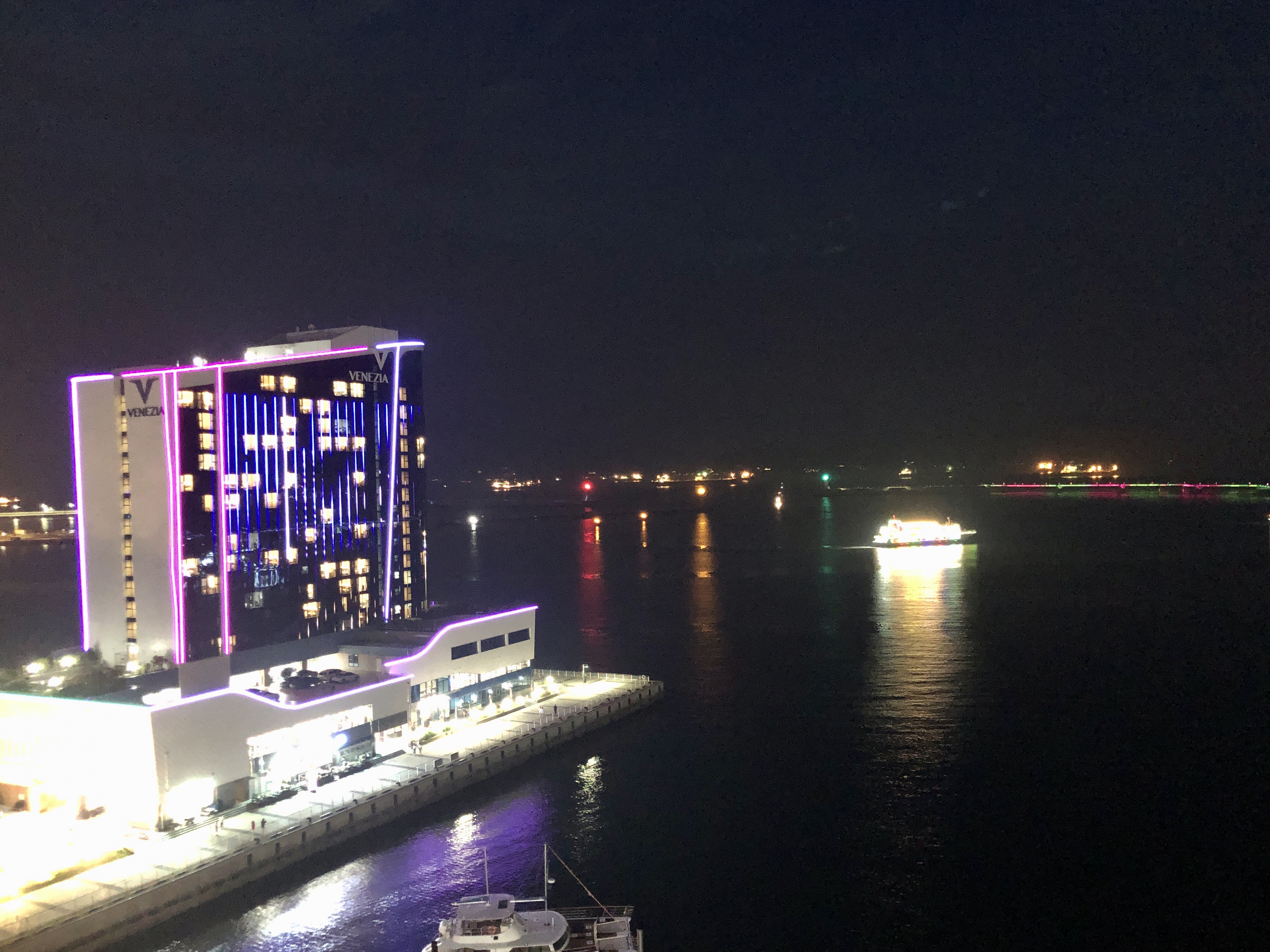 그리고 유탑마리나 좌측으로 여수 베네치아, 우측으로 소노캄 리조트가 멋진 조명을 켜주면서