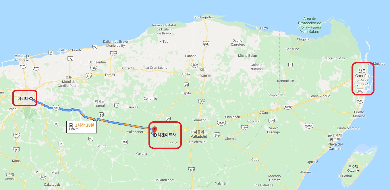 한가지 팁은 치첸이트사는 보통 칸쿤에서 데이투어로 오게 되는데 칸쿤에서 3~4시간 정도 소요되므로,