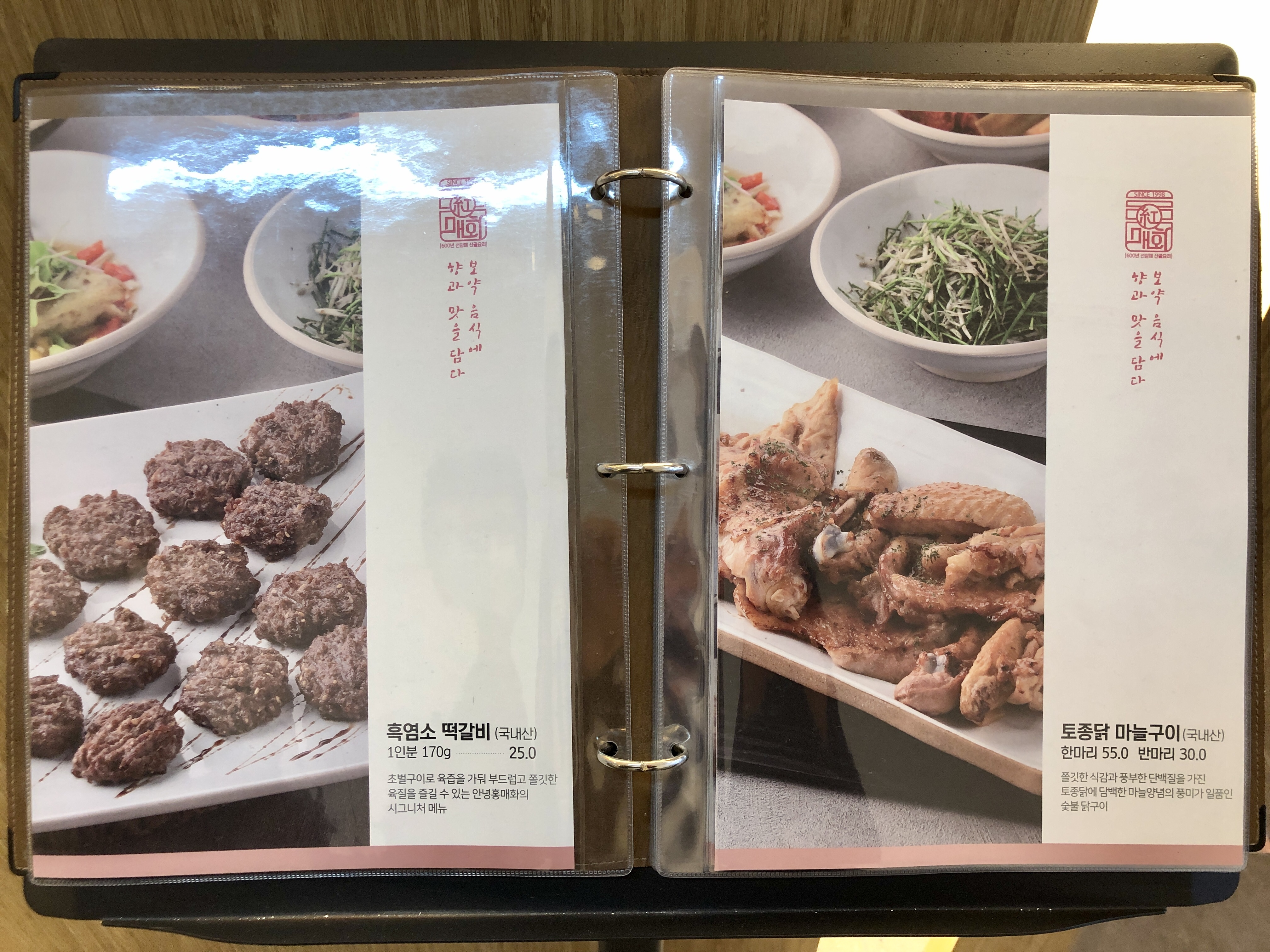 흑염소 떡갈비랑 토종닭 마늘구이가 보자마자 너무 맛나보여서 바로 이 걸로 먹기로 정했습니다.