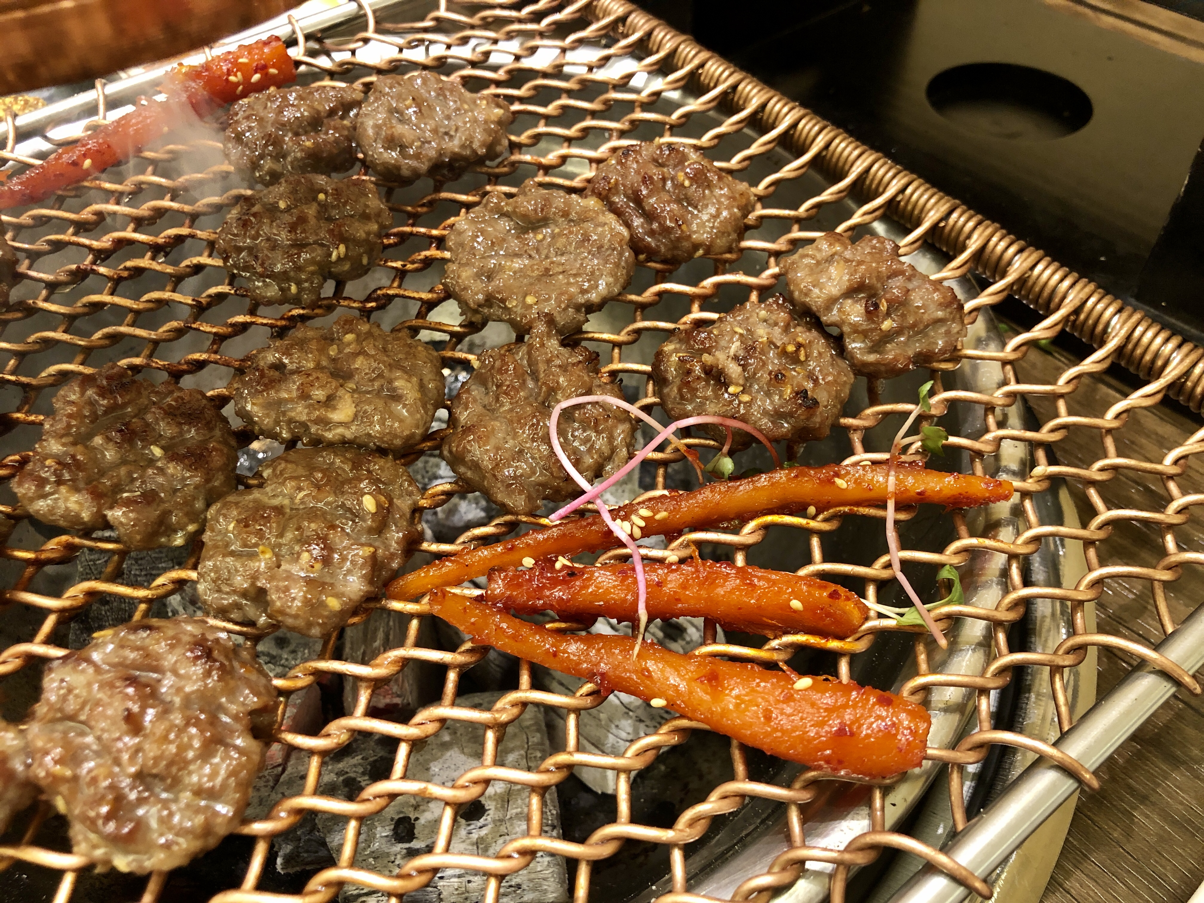 대야에 담긴 숯이 정말 신기한게 열기는 느껴지는데 생각보다 떡갈비가 타지도 않고 은은하게 잘 구워졌습니다.