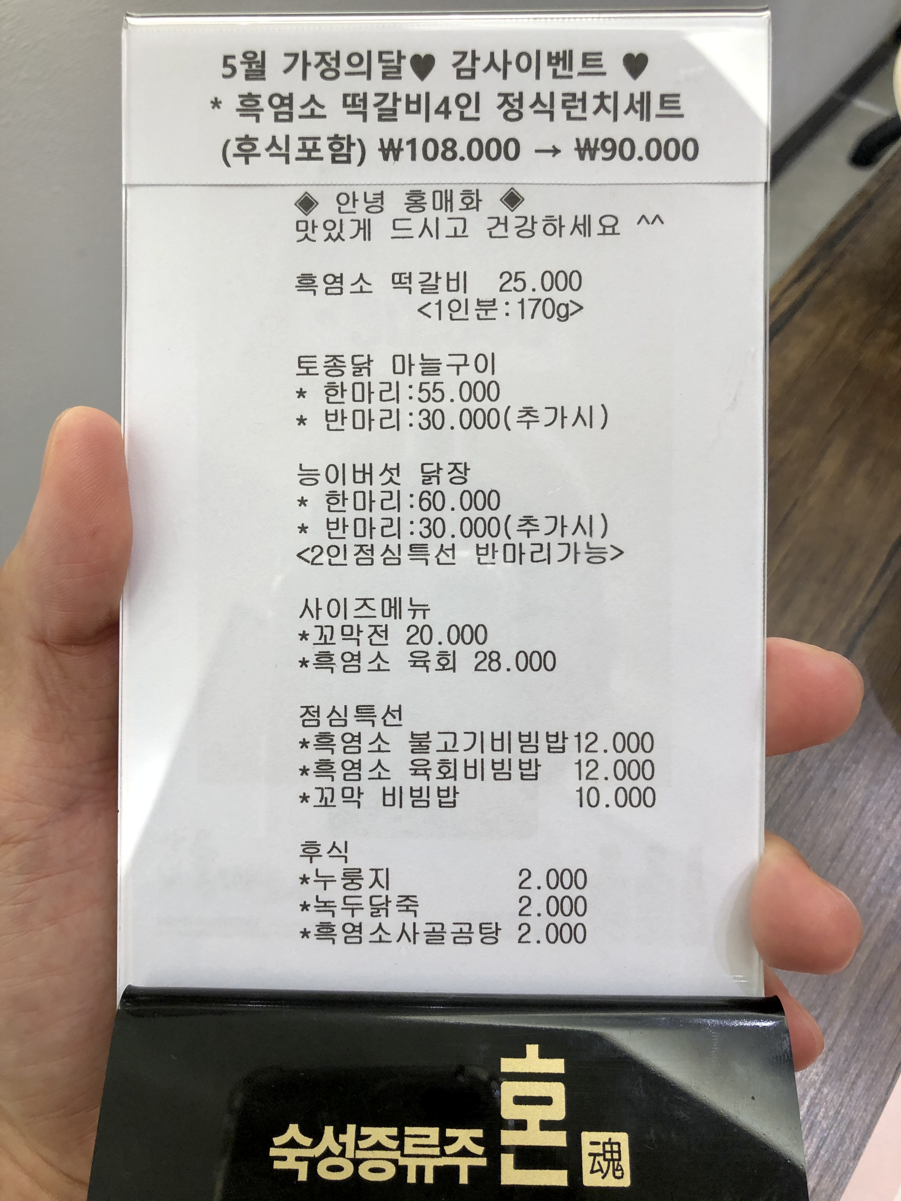그리고 5월 가정의달 감사이벤트를 하고 계시는데, 후식이 포함된 흑염소 떡갈비4인 정식런치세트를