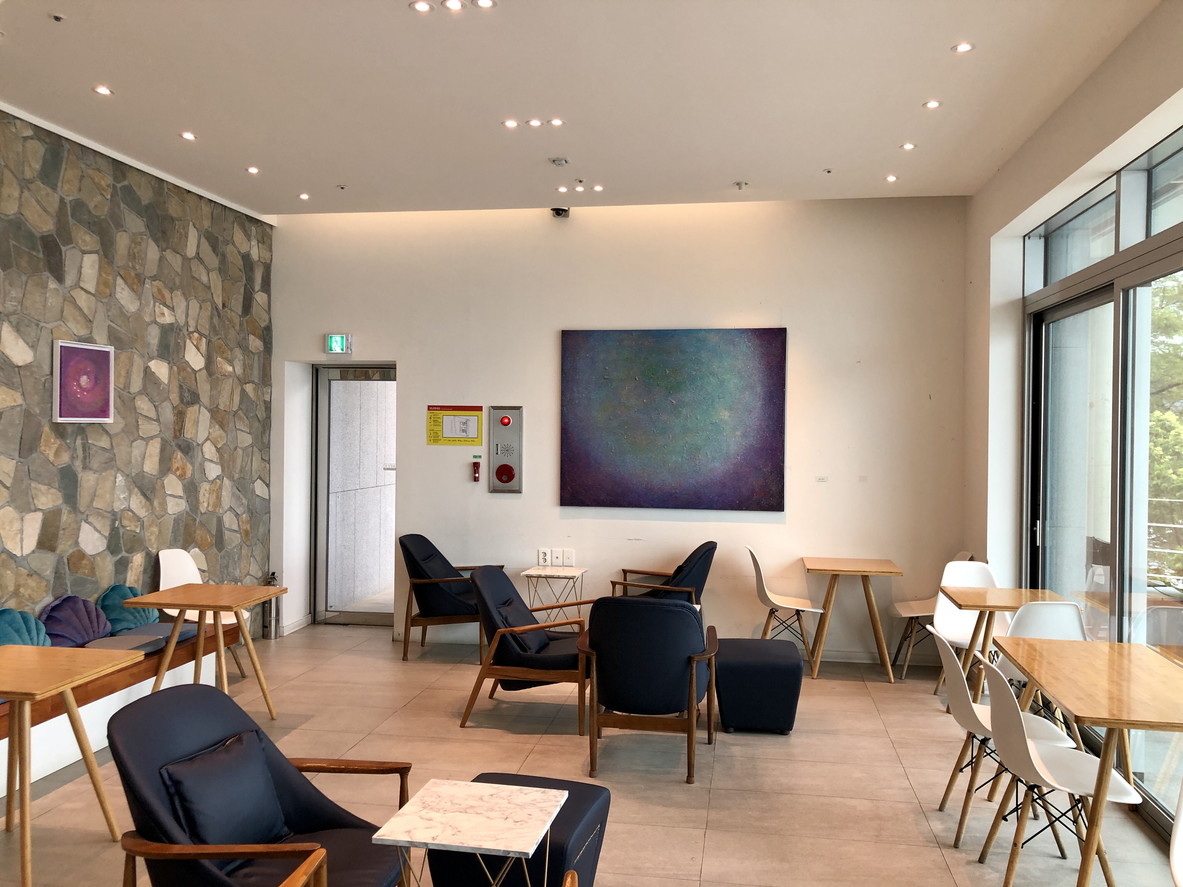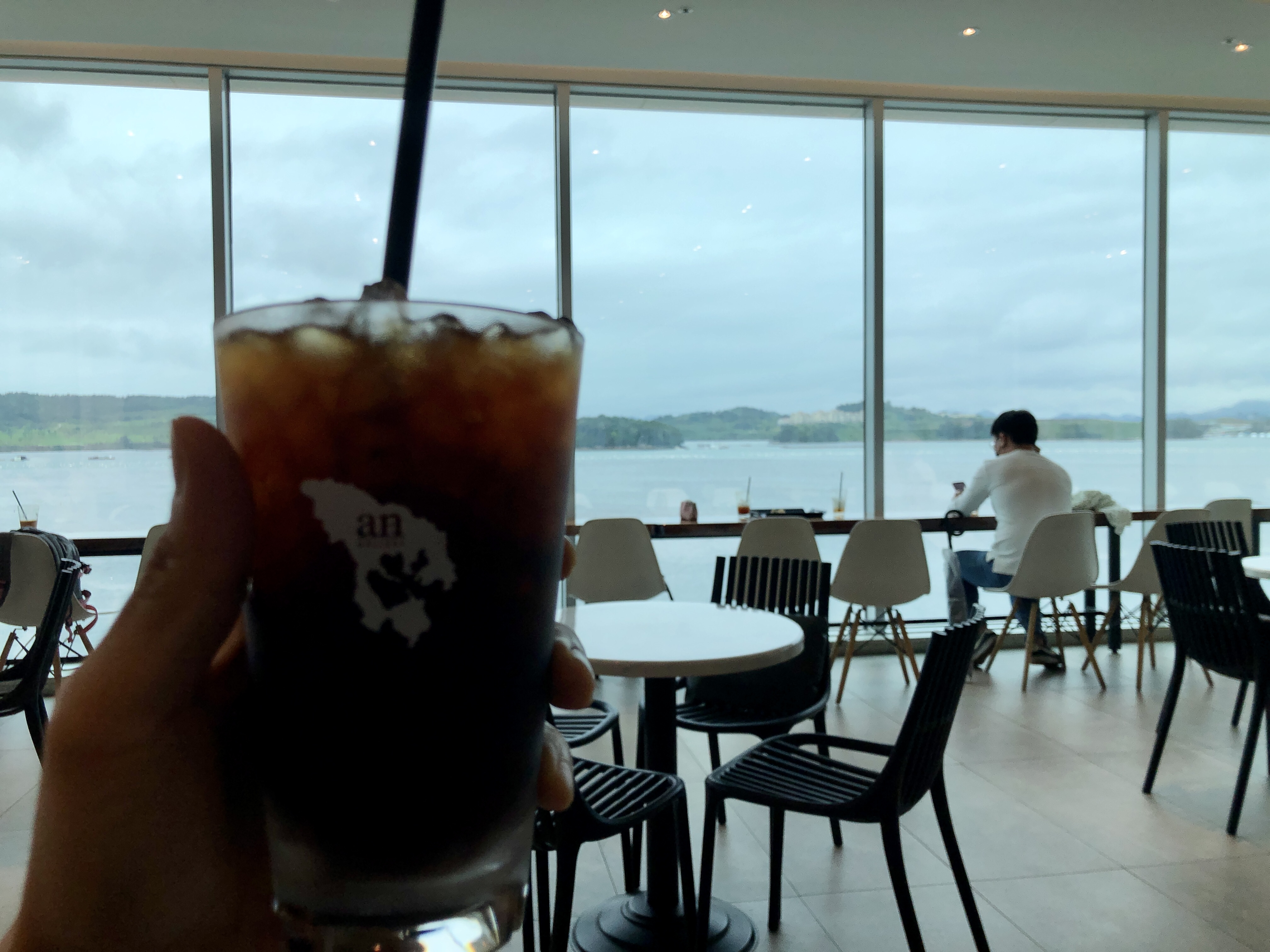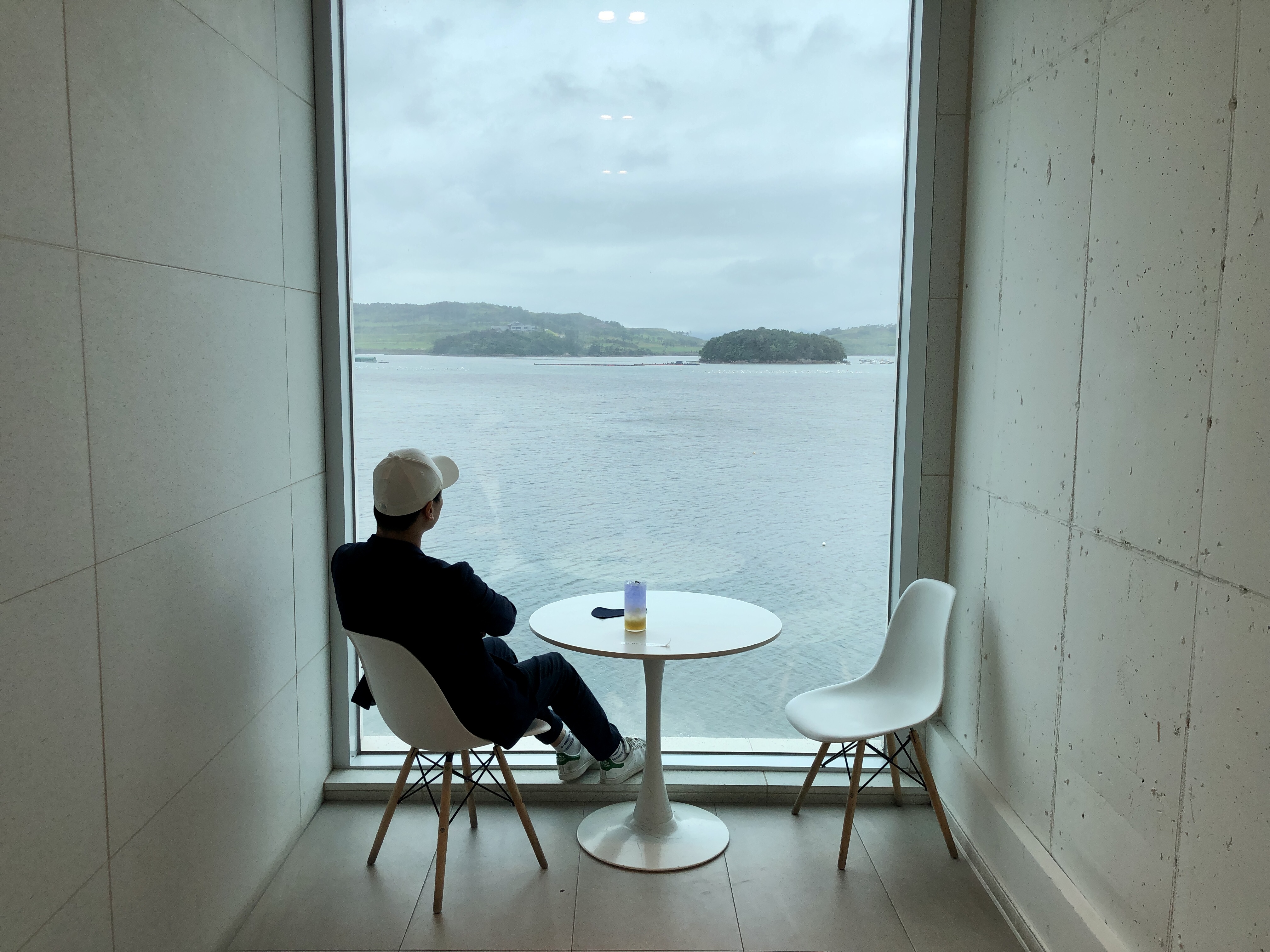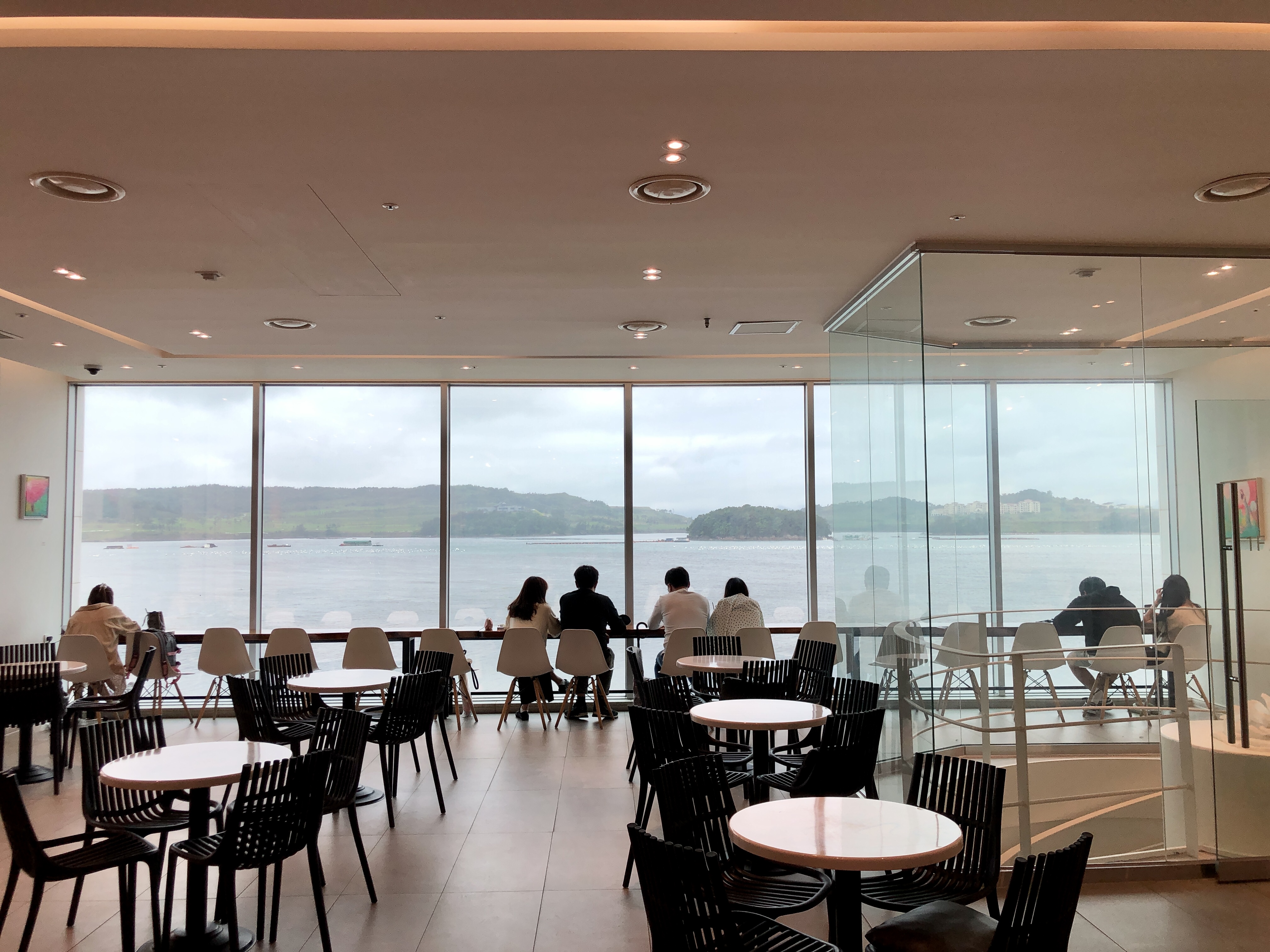 갤러리안 카페에 들어서면 통유리로 된 바다가 보이는 멋진 전망이 우선 들어옵니다.