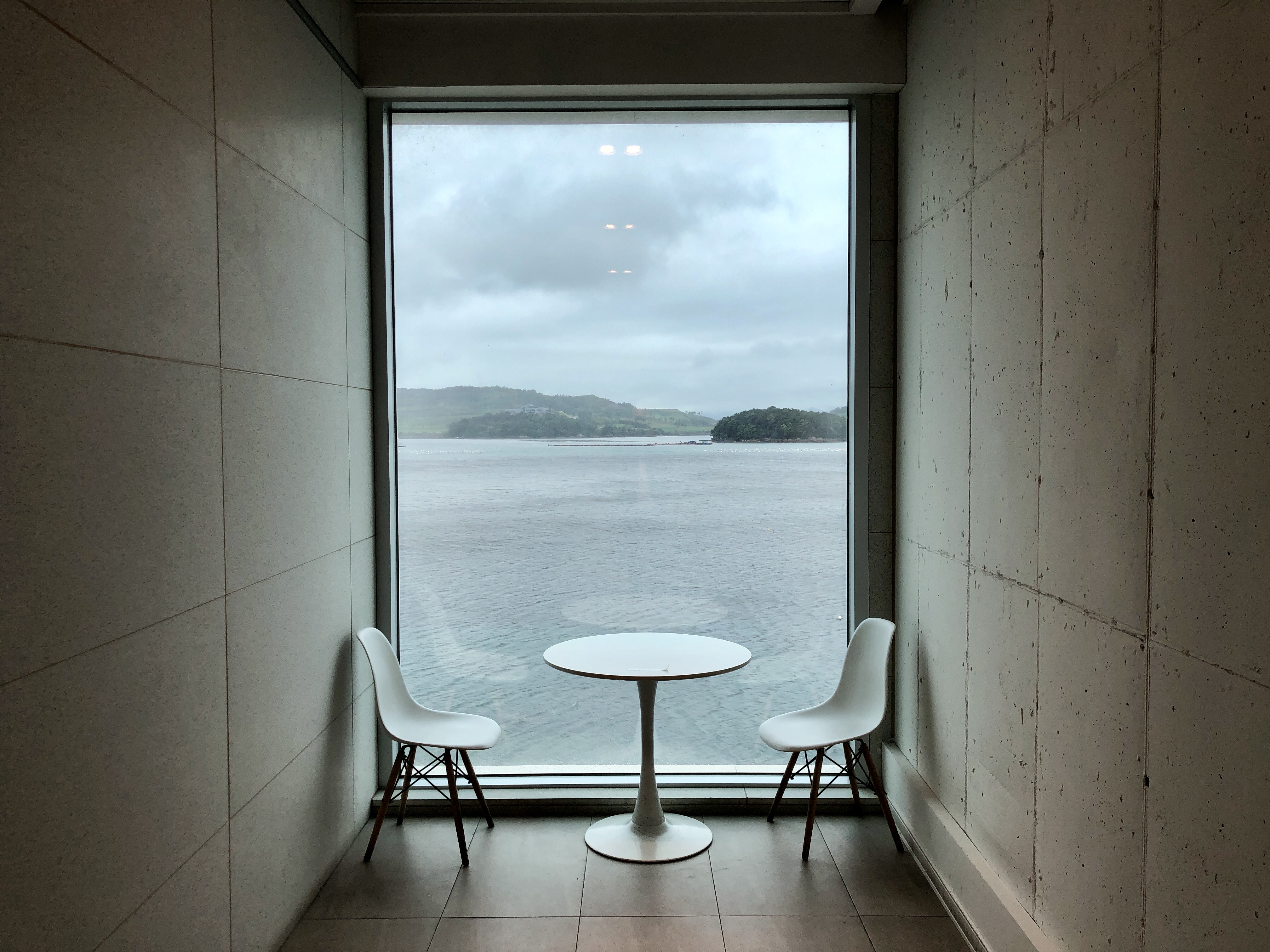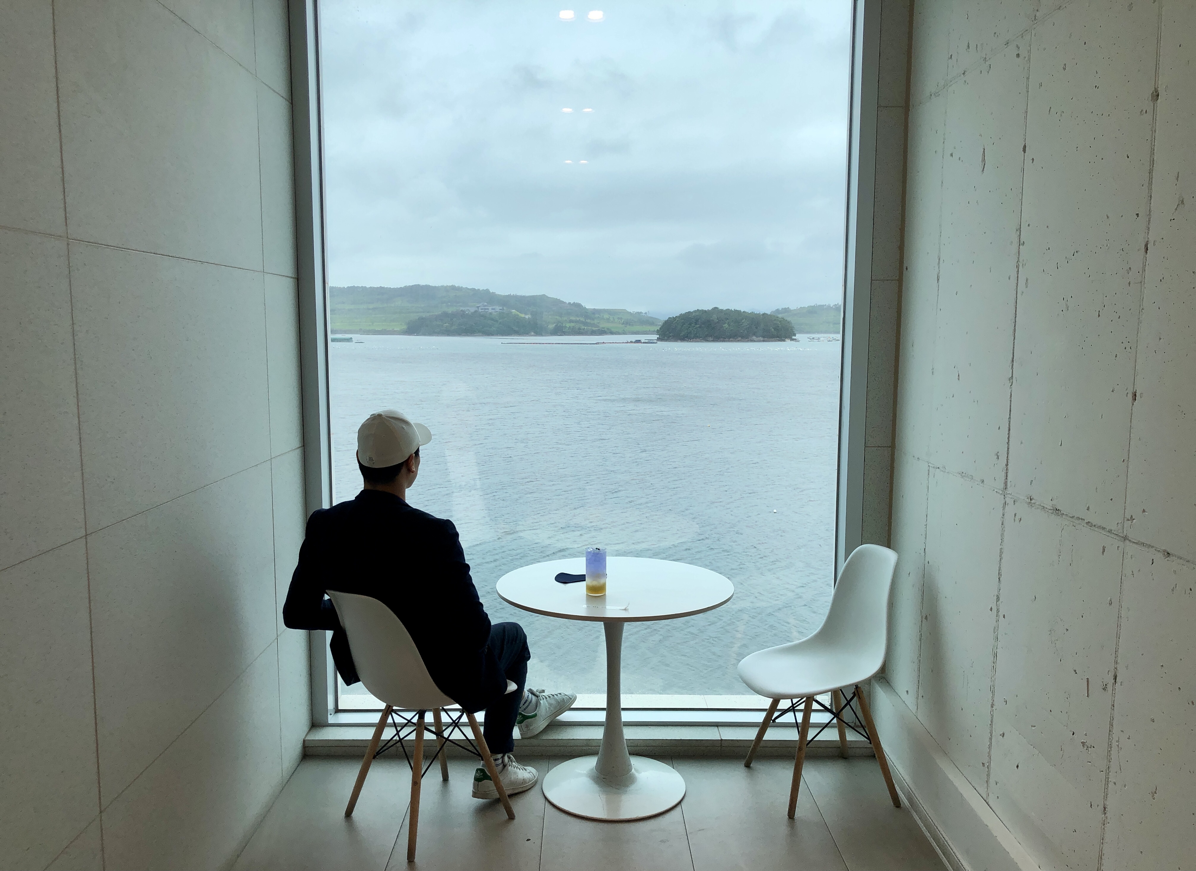 갤러리안 카페에 들어서면 통유리로 된 바다가 보이는 멋진 전망이 우선 들어옵니다.