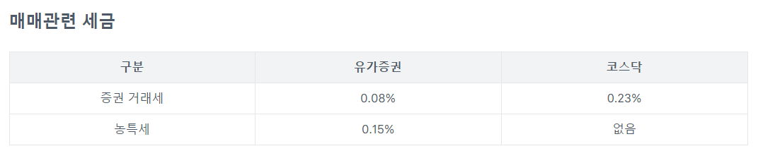 참고로 토스증권 매매관련 세금은 아래와 같습니다.