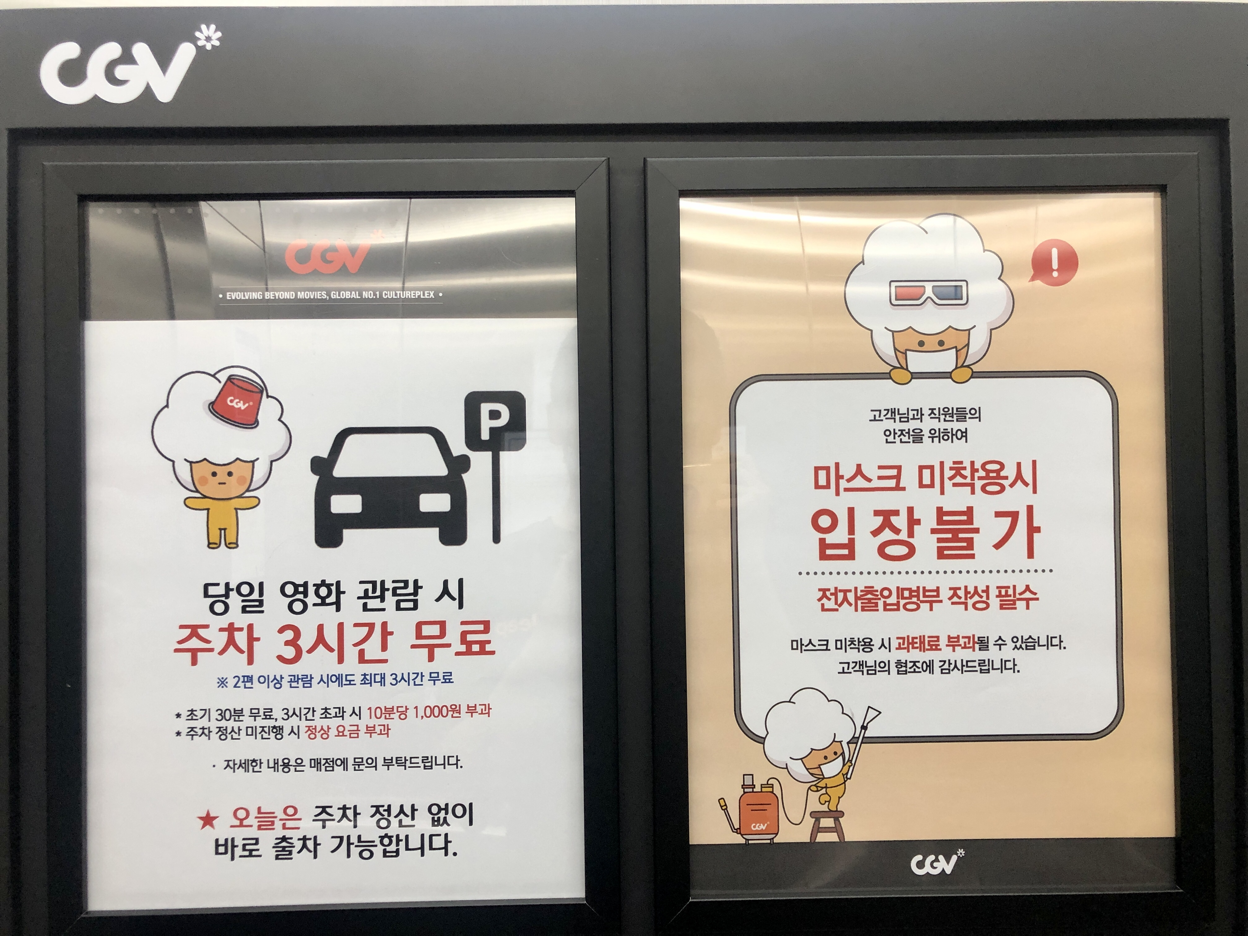 주차 3시간 무료 표시와 주차정산기도 4층 티켓박스 앞에 있었지만 아직까지는 무료 주차입니다.