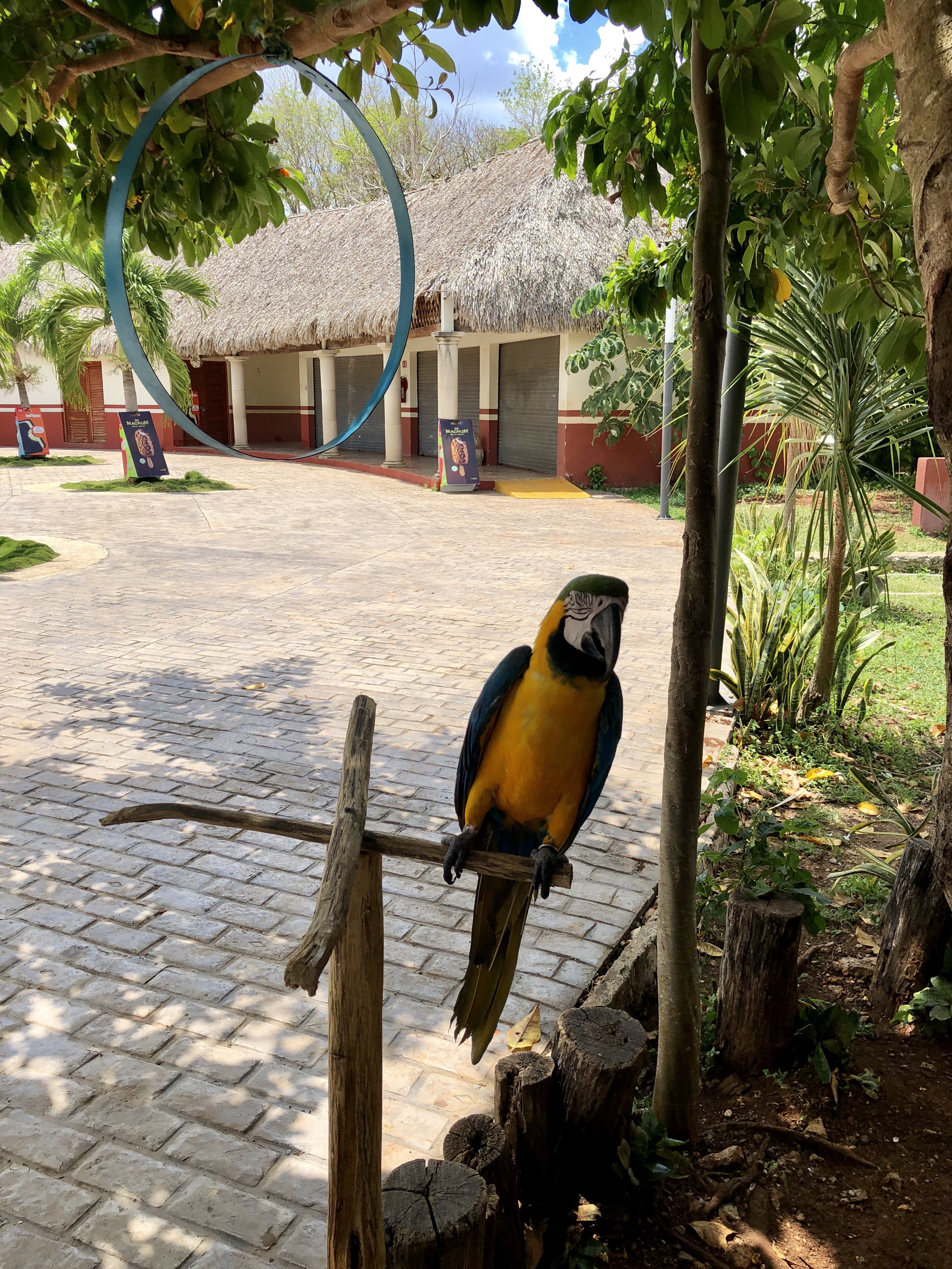 입구의 앵무새가 반갑게 동양에서 온 이방인을 맞이해준다.