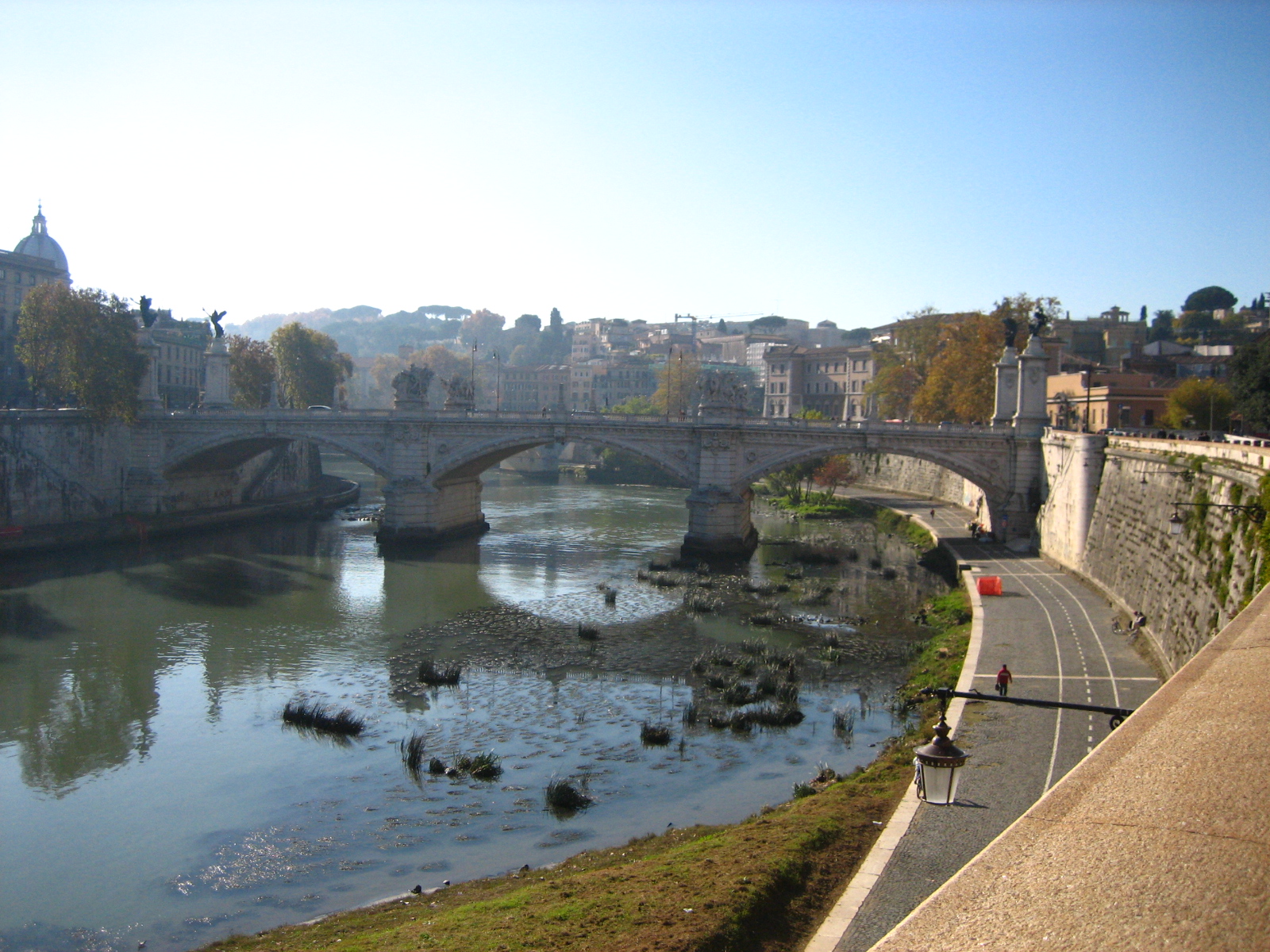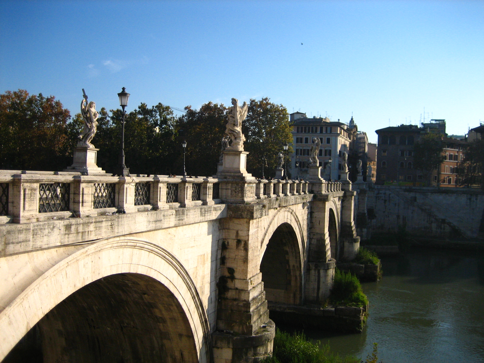 산탄젤로 다리가 있습니다. 그리고 그 다리 위에도 10개의 천사 조각이 양쪽의 교각에 세워져 있습니다.
