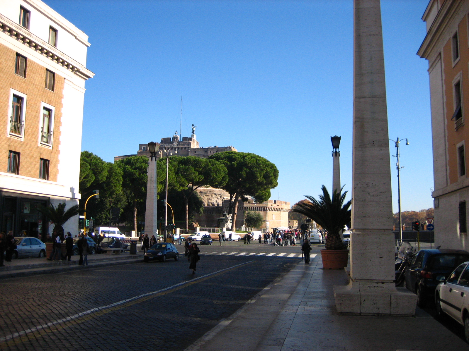 성 베드로 광장에서 천사의성까지는 직선도로로 약 800미터만 걸어오면 되므로 금방 도착합니다.