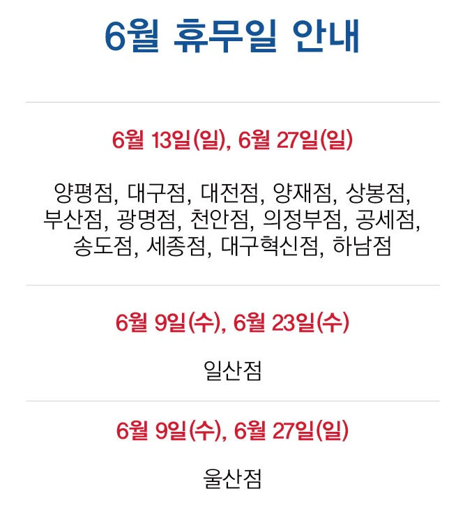 3) 6월 9일(수), 6월 27일(일) 휴무 코스트코 점포