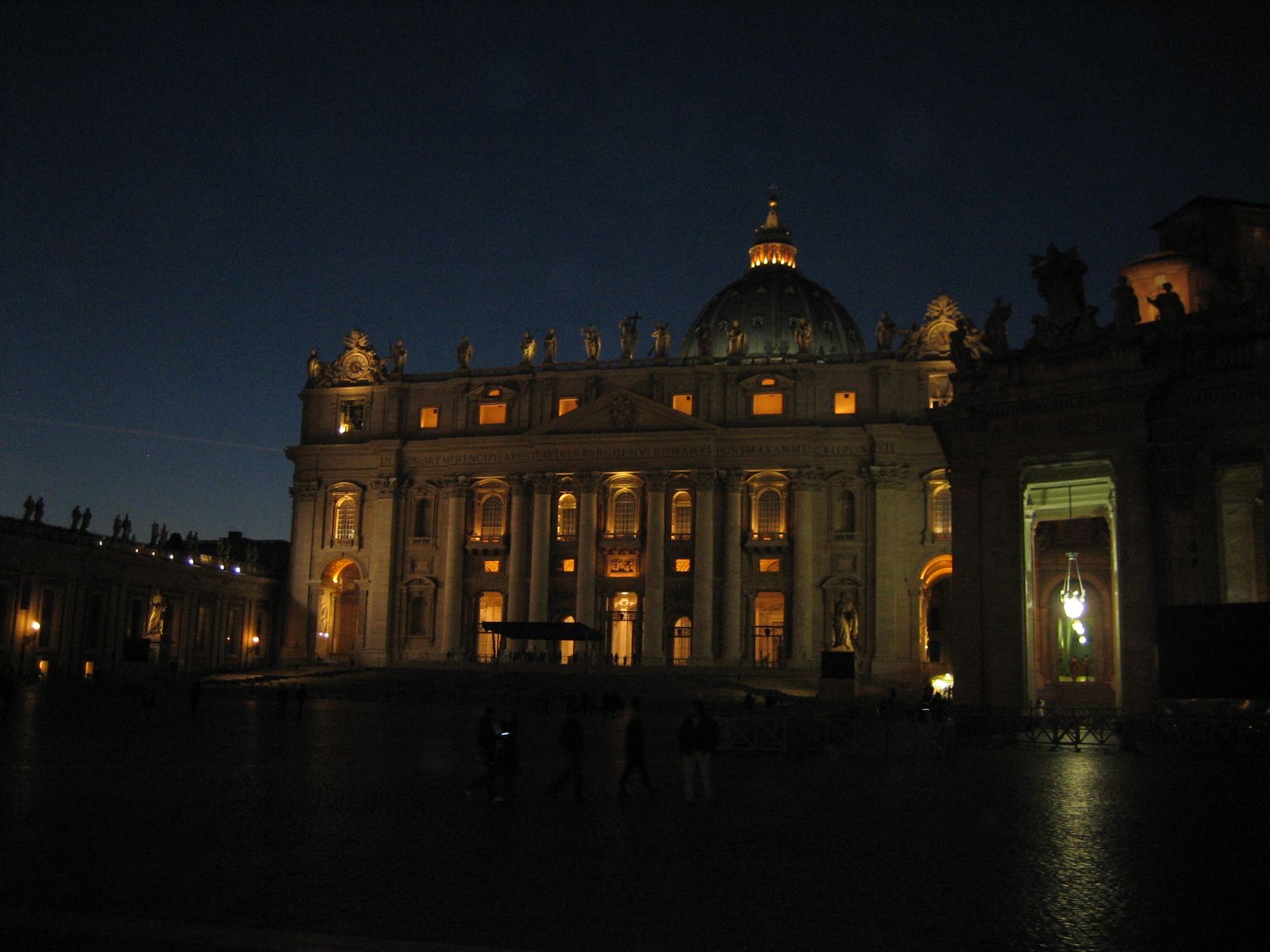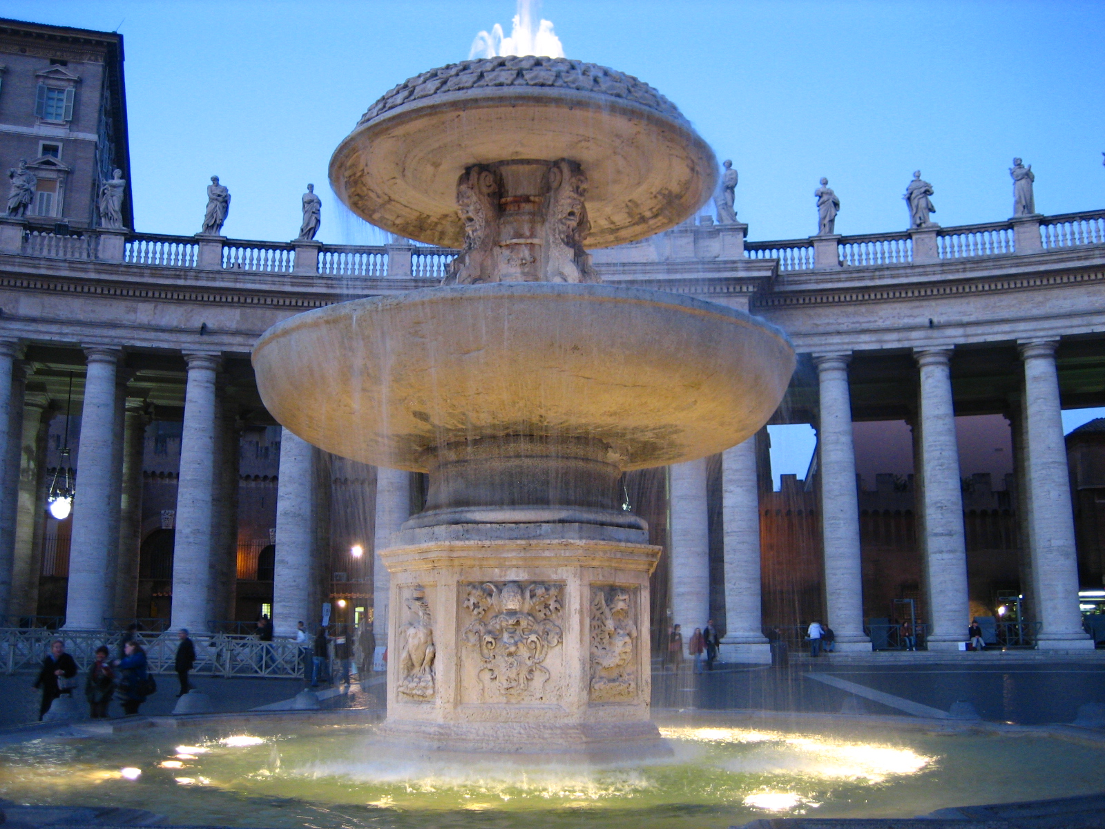 성 베드로 광장의 분수대도 불을 밝히고 하나 둘 어둠이 찾아오기 시작하자