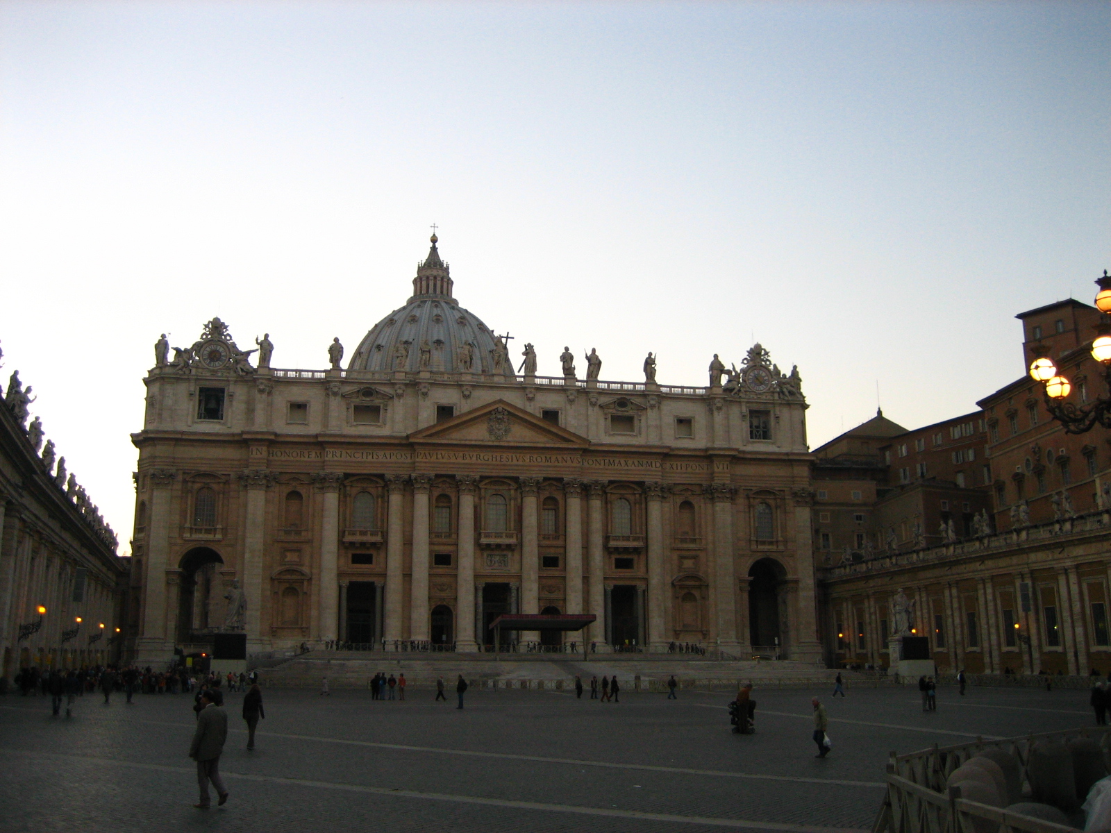 바티칸에서의 날이 저물고 성 베드로 성당에 아름다운 불이 들어오기 시작합니다.