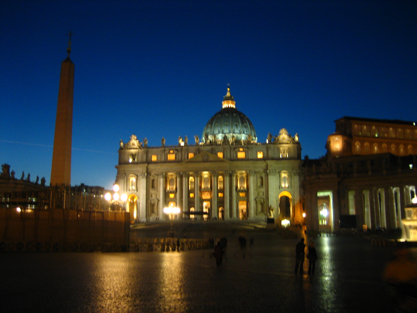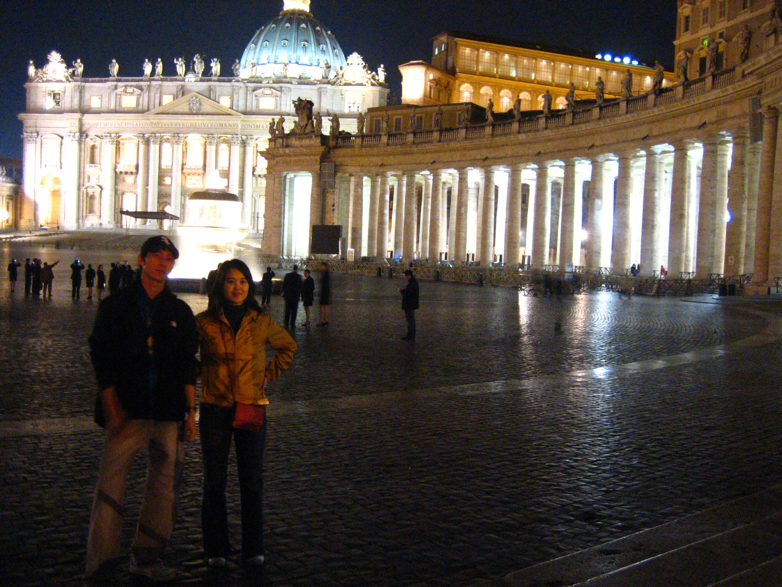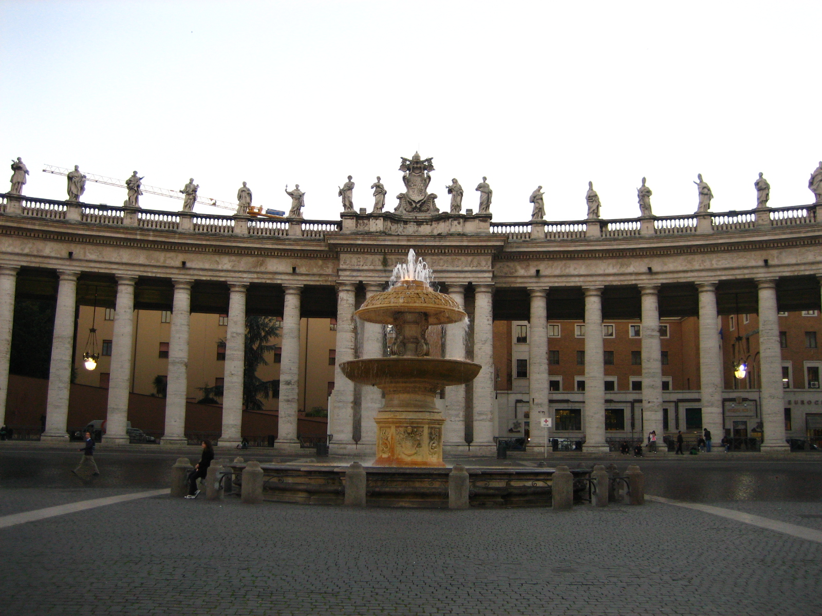 성 베드로 광장의 분수대도 불을 밝히고 하나 둘 어둠이 찾아오기 시작하자