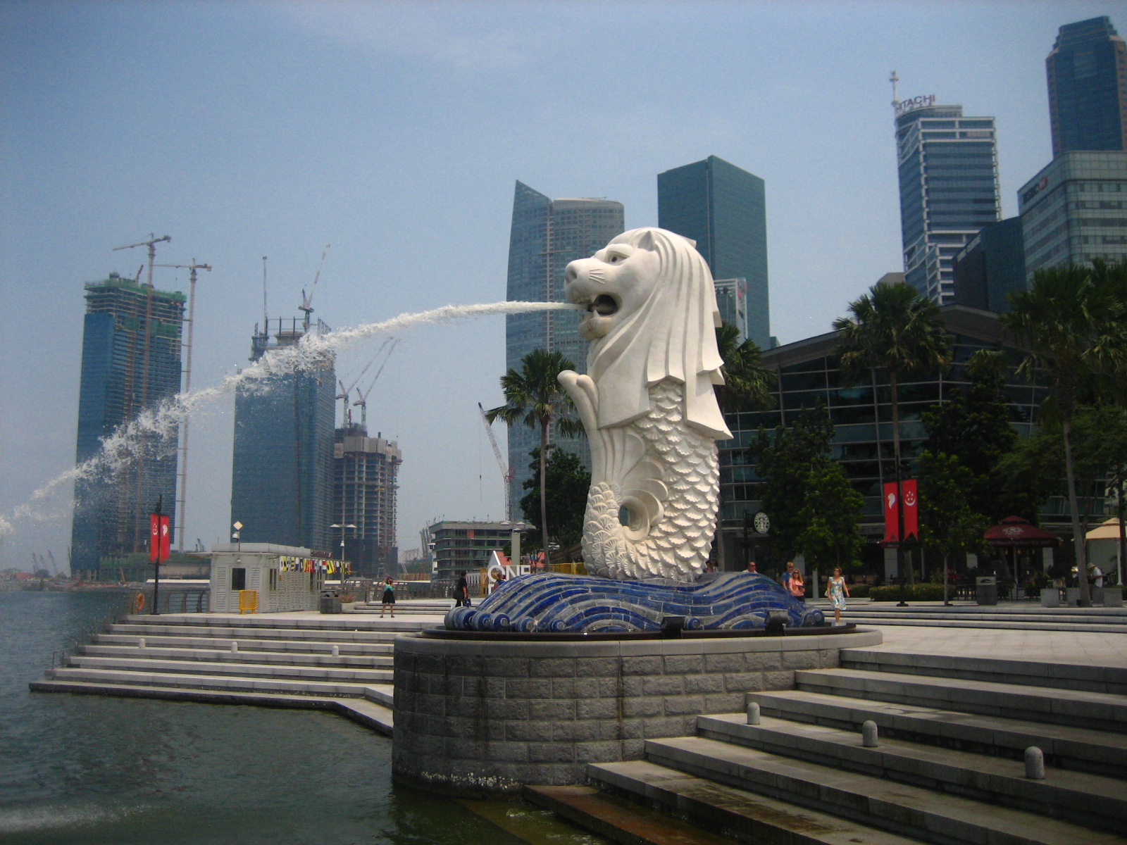 오늘날 멀라이언 파크에서 이 전설을 살펴볼 수 있습니다. 입에서 물을 내뿜는 멀라이언상은