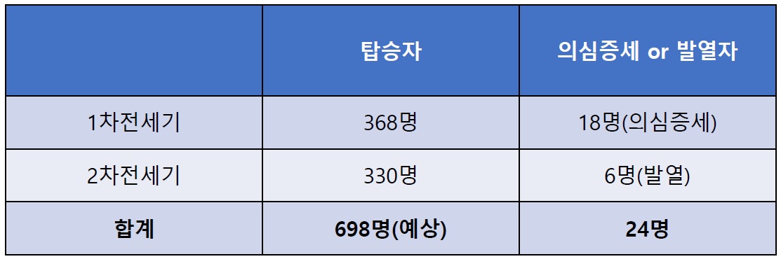 총 330명 탑승으로 1차 때 고열로 中 검역 탈락한 1명도 2차 전세기에 탑승한 것으로 보인다.