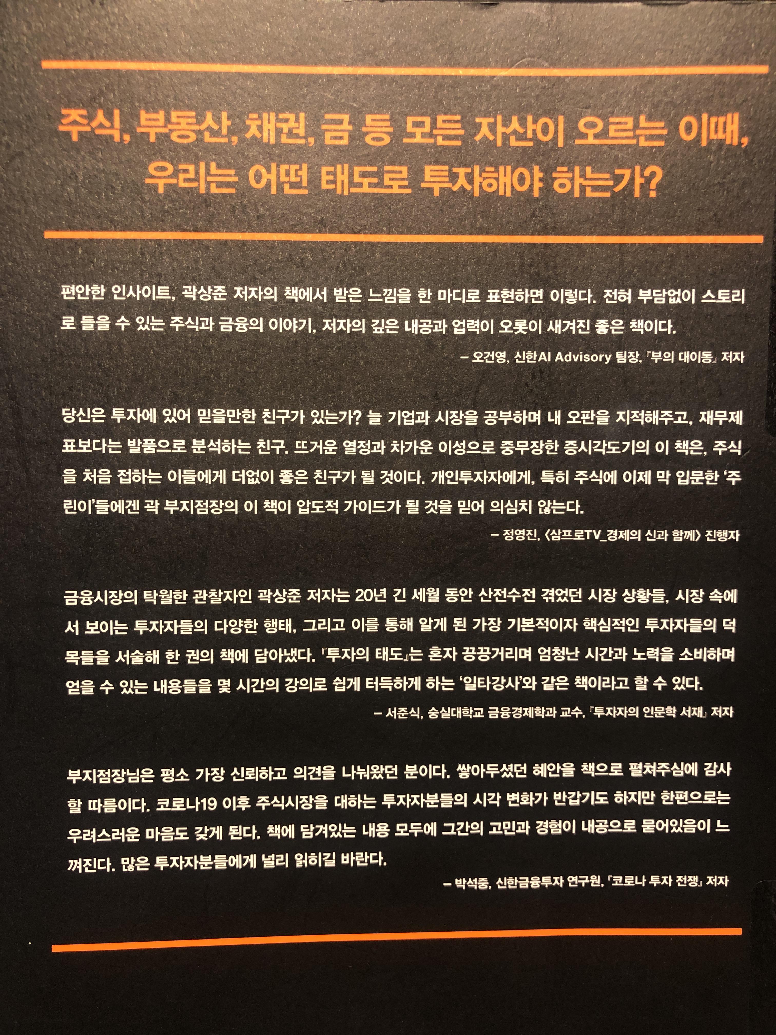 요즘 시장이 어렵게 느껴지는 분들에게 투자의태도 라는 책을 추천드립니다.