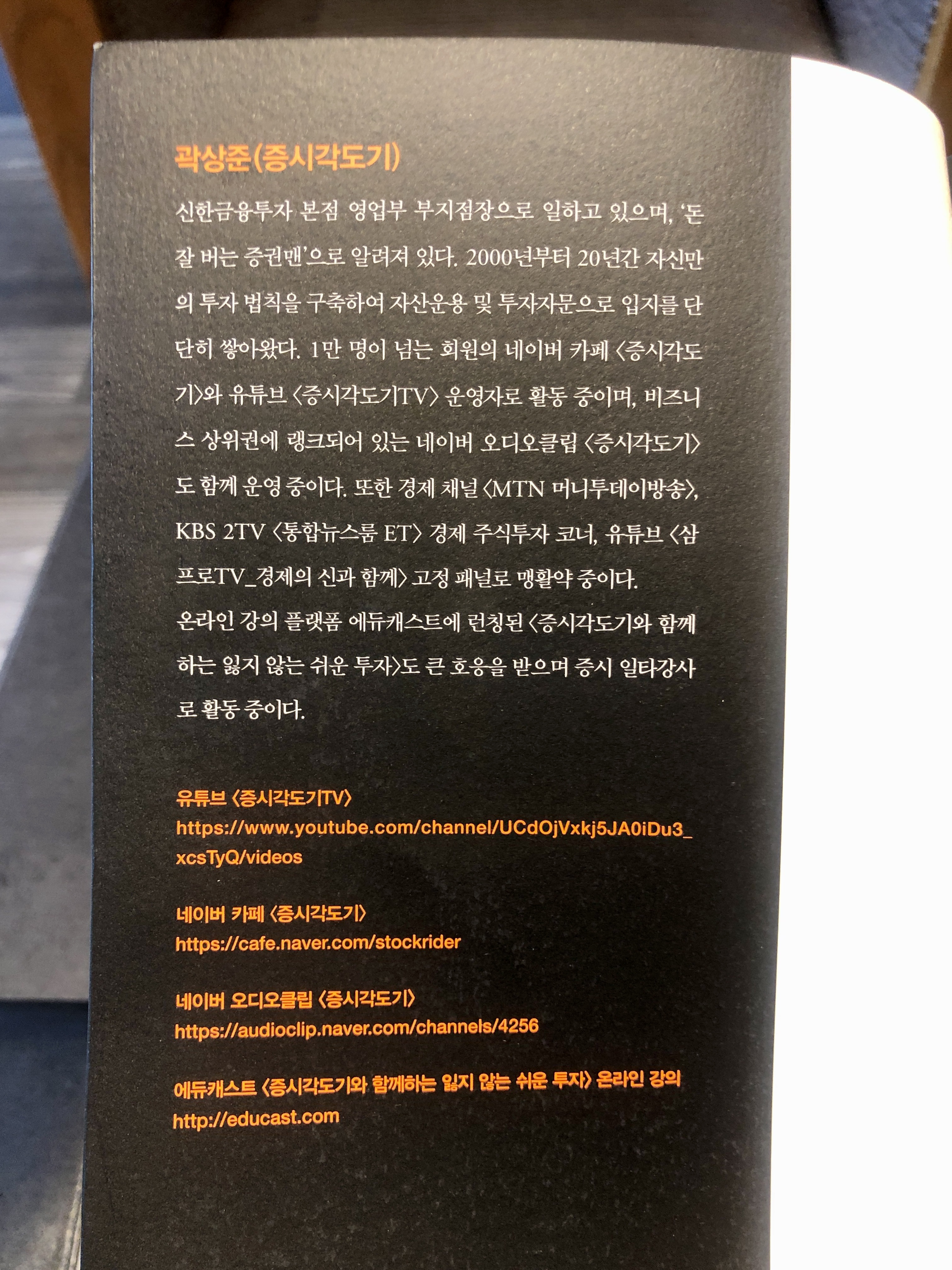 이 책을 집필한 증시각도기 곽상준 저자는 신한금융투자 본점 영업부 부지점장으로 20년간의 경력으로