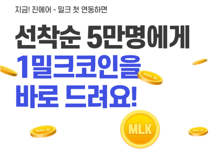 혜택1. 지금 진에어와 밀크 연결하면 1밀크 즉시 지급!
