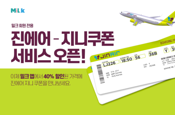 지난 달 계약을 맺으며 향후 밀크 플랫폼에서는 진에어 회원 계정 연동 및 진에어 항공운임 할인 쿠폰인
