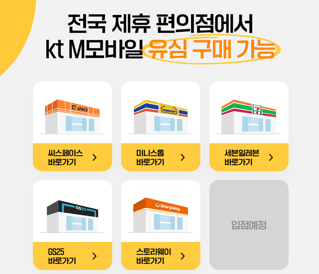 유심 필요해? 가자! 편의점으로 전국 제휴 편의점에서 kt M모바일 유심 구매 가능 편의점 유심 구매했다면? 바로 개통하자 구매하신 편의점을 선택해주세요 Tip! 상담 없이 직접 하는 셀프개통 01