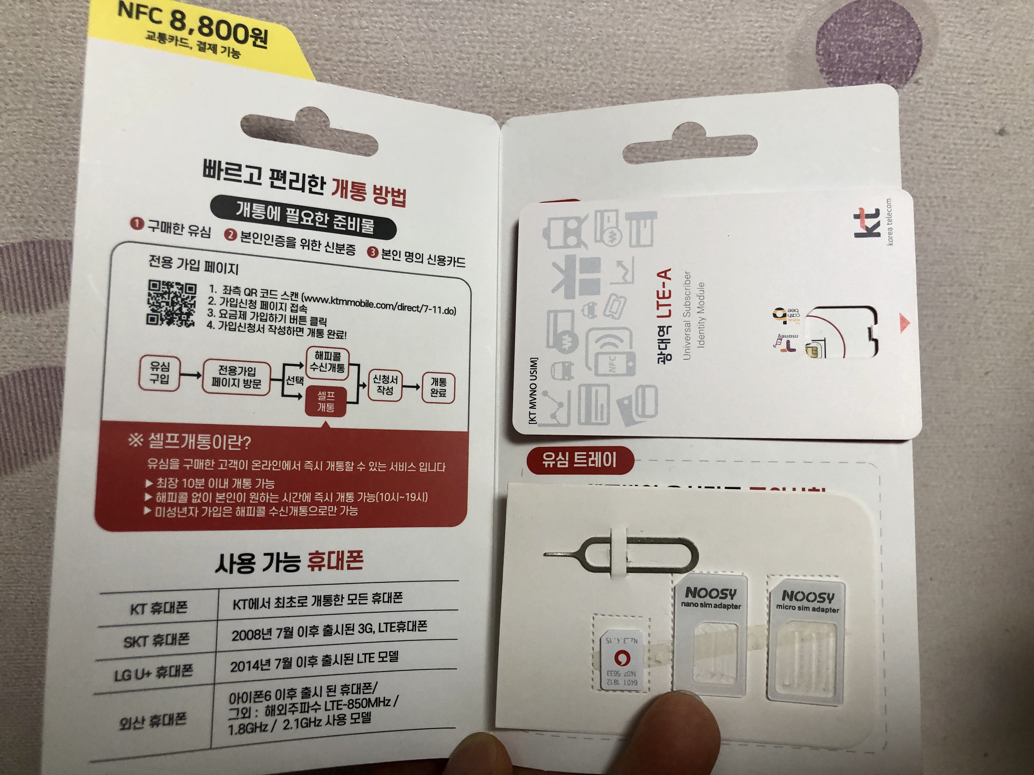 주말에는 SIM 재발송이 불가능 하니, GS나 세븐일레븐 같은 편의점에 가서 SIM카드를 개별 구매해야 한다고 합니다.