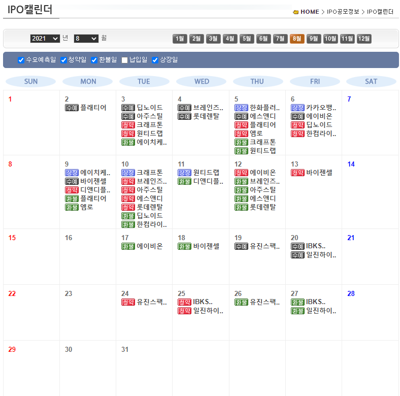 공모주 청약이 있는 달로 공모주 투자하시는 분들에게 8월은 매우 바쁜달입니다.