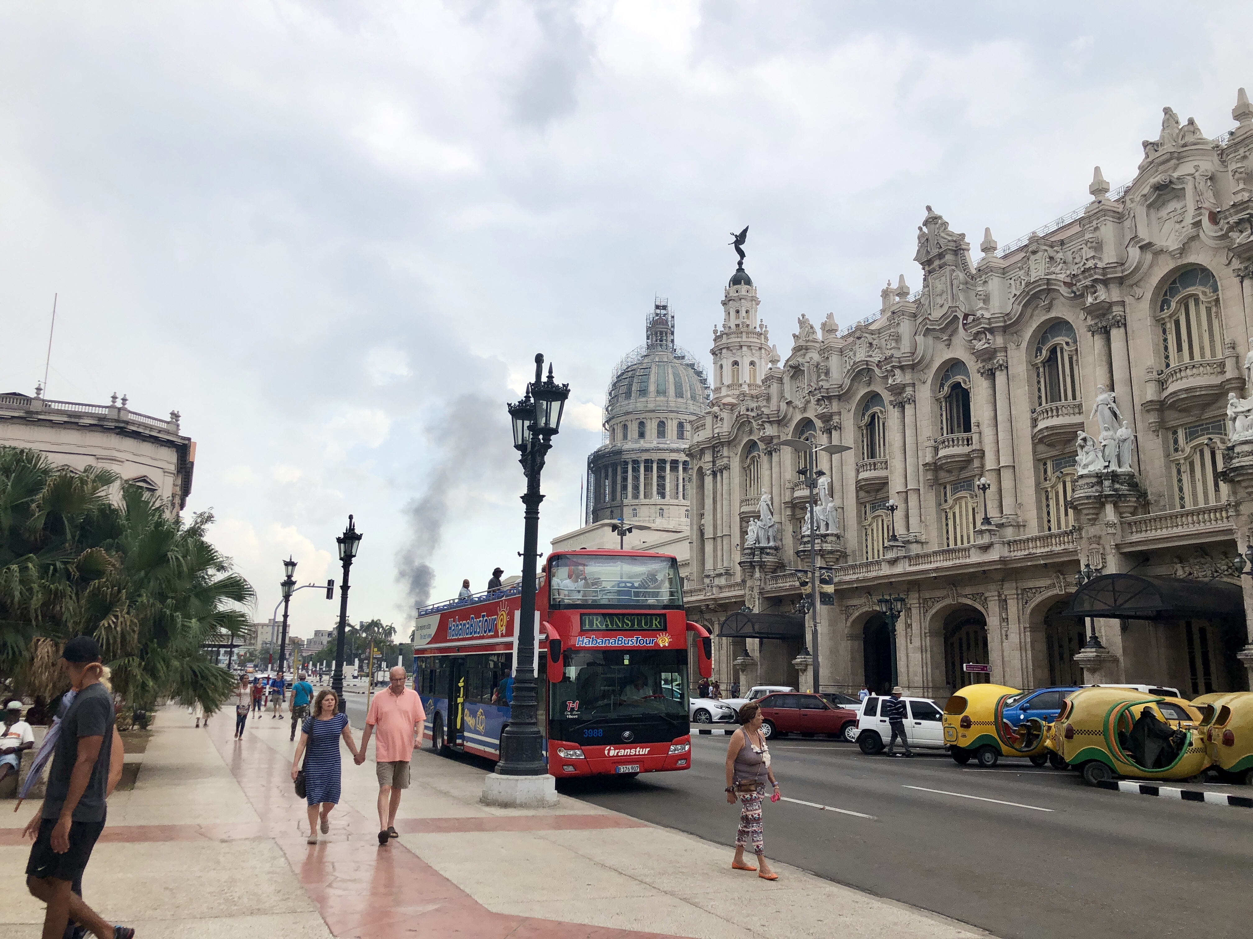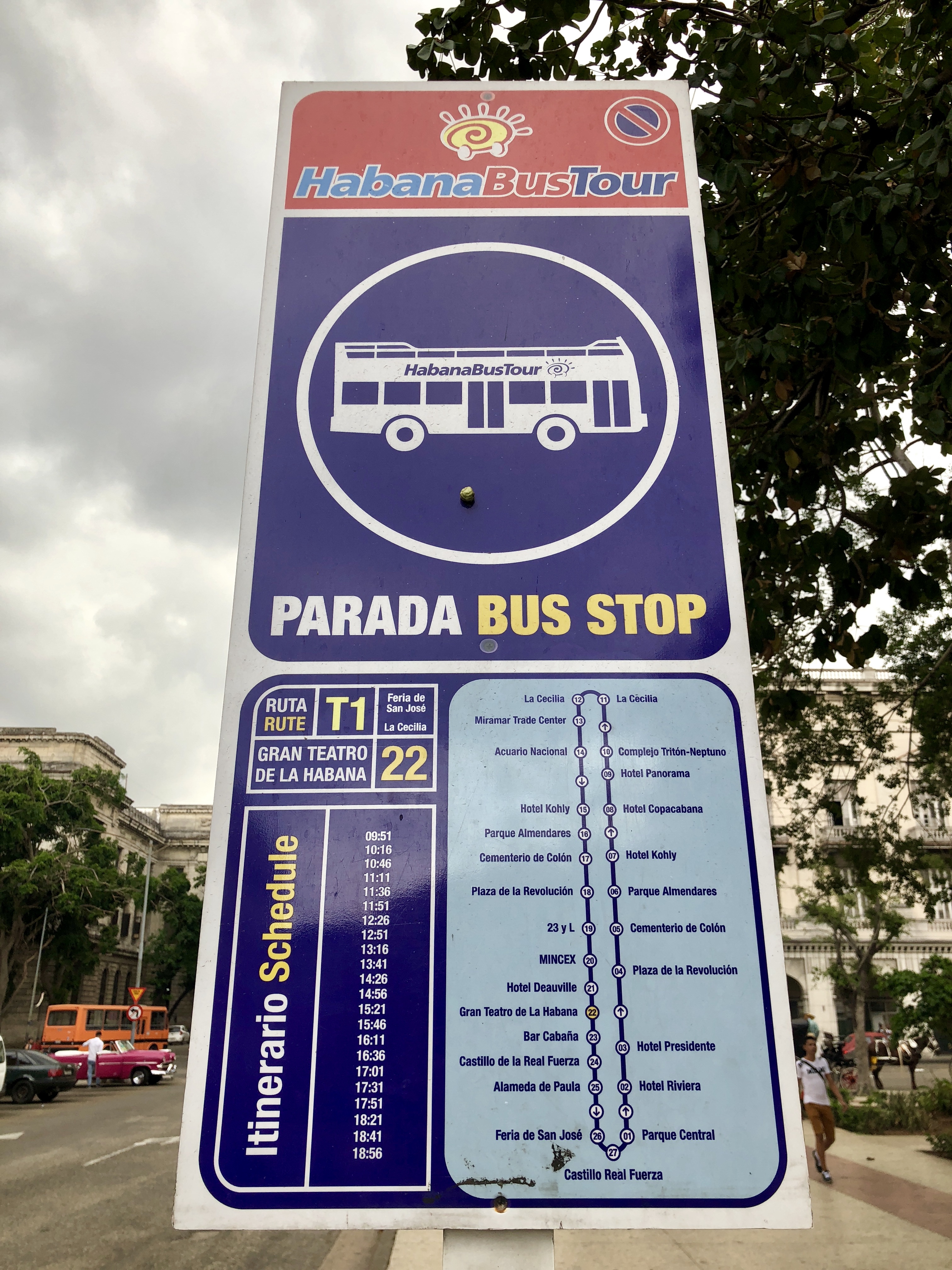 이 광장에는 하바나 버스투어 정류장이 있다.