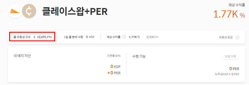 KSP-PER Pool의 유동성 규모는 총 12,701,499 달러입니다.
