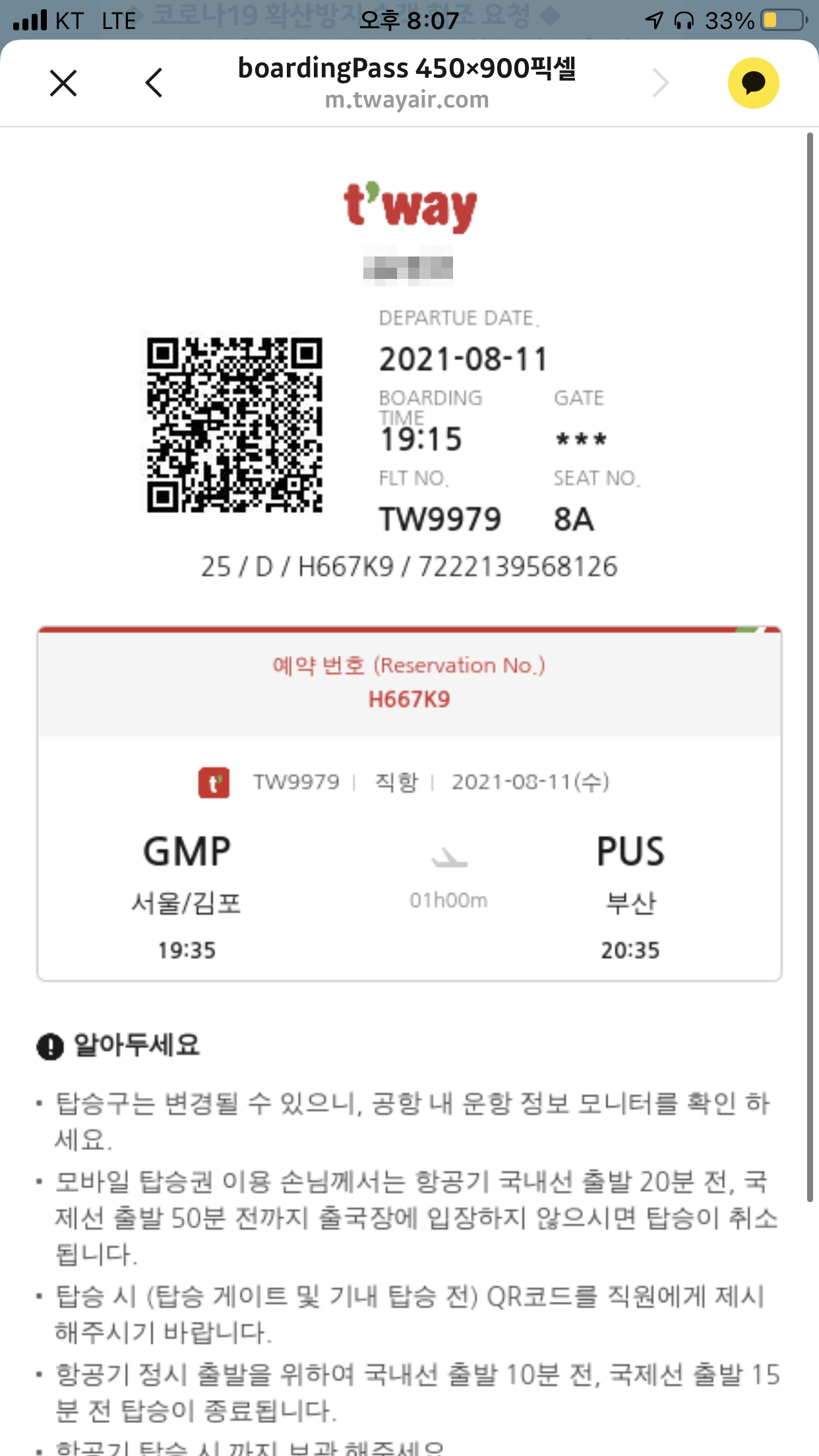 비행기는 생각보다 일찍 출발하여 예정시간보다 10분이나 먼저 부산에 도착하게 되었습니다.