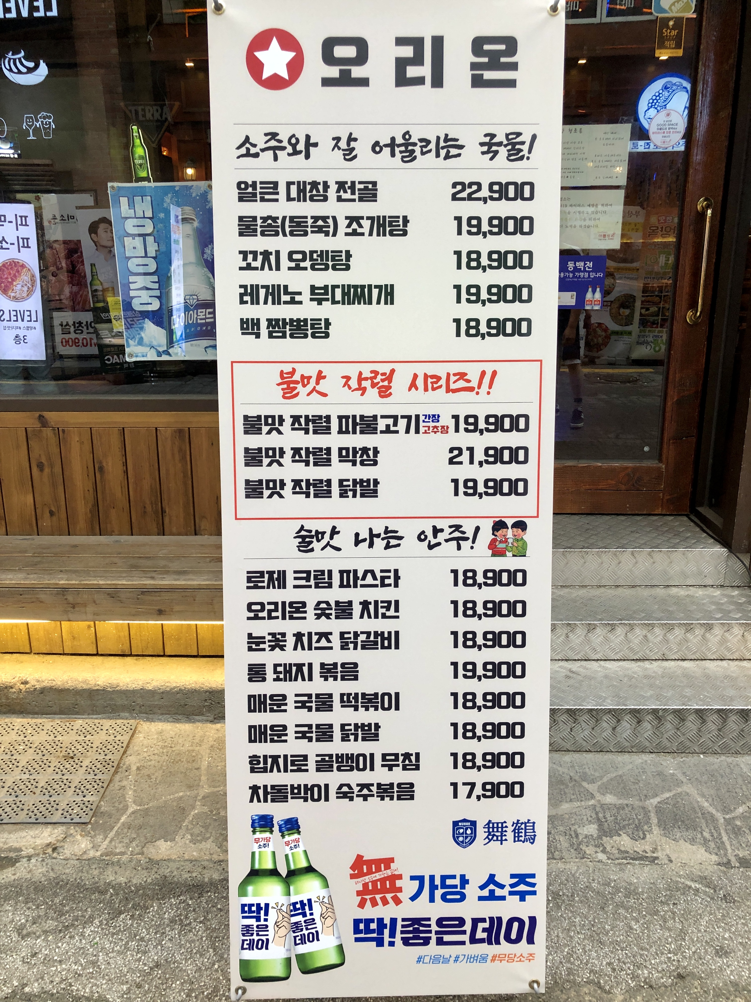 저는 아는 곳이 없어서 현지인에게 추천받아 오리온이라는 서면술집을 가게 되었어요
