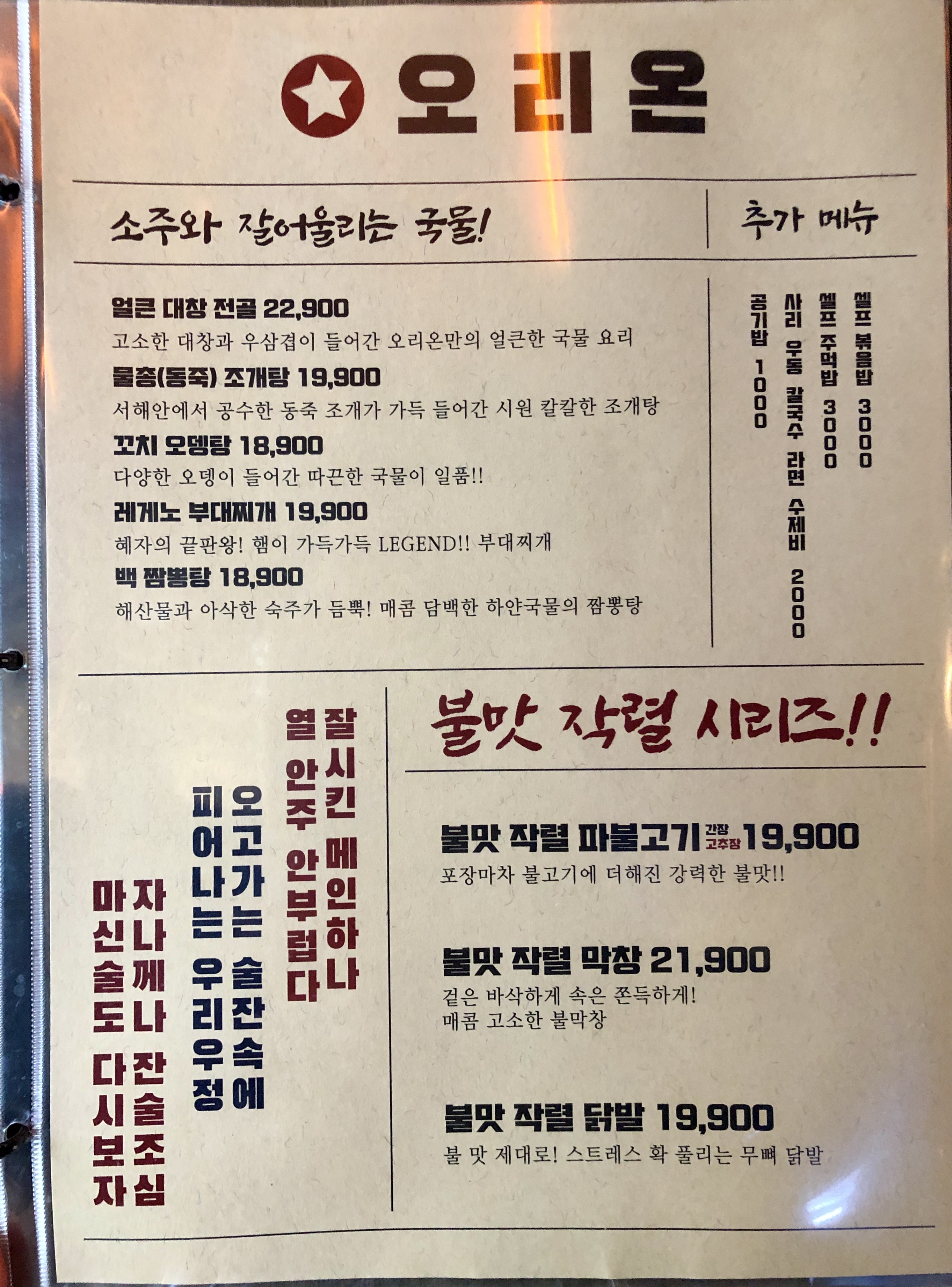 부산 여행가셔서 서면가시면 방문해볼만한 서면 술집으로 오리온 추천드립니다 !