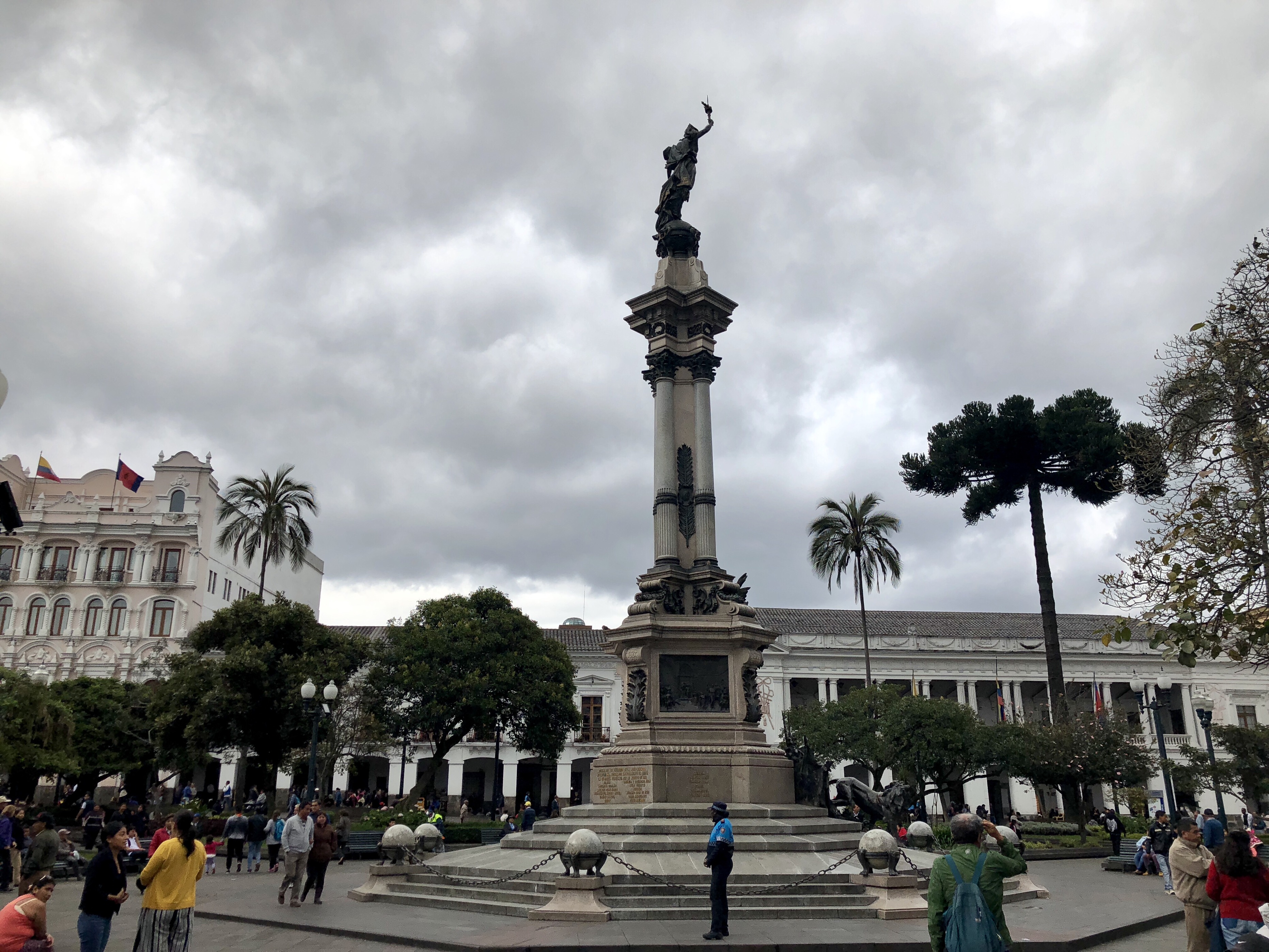 광장의 가운데에는 원래 분수가 있었으나 에콰도르 독립 100주년 기념탑을 세우면서
