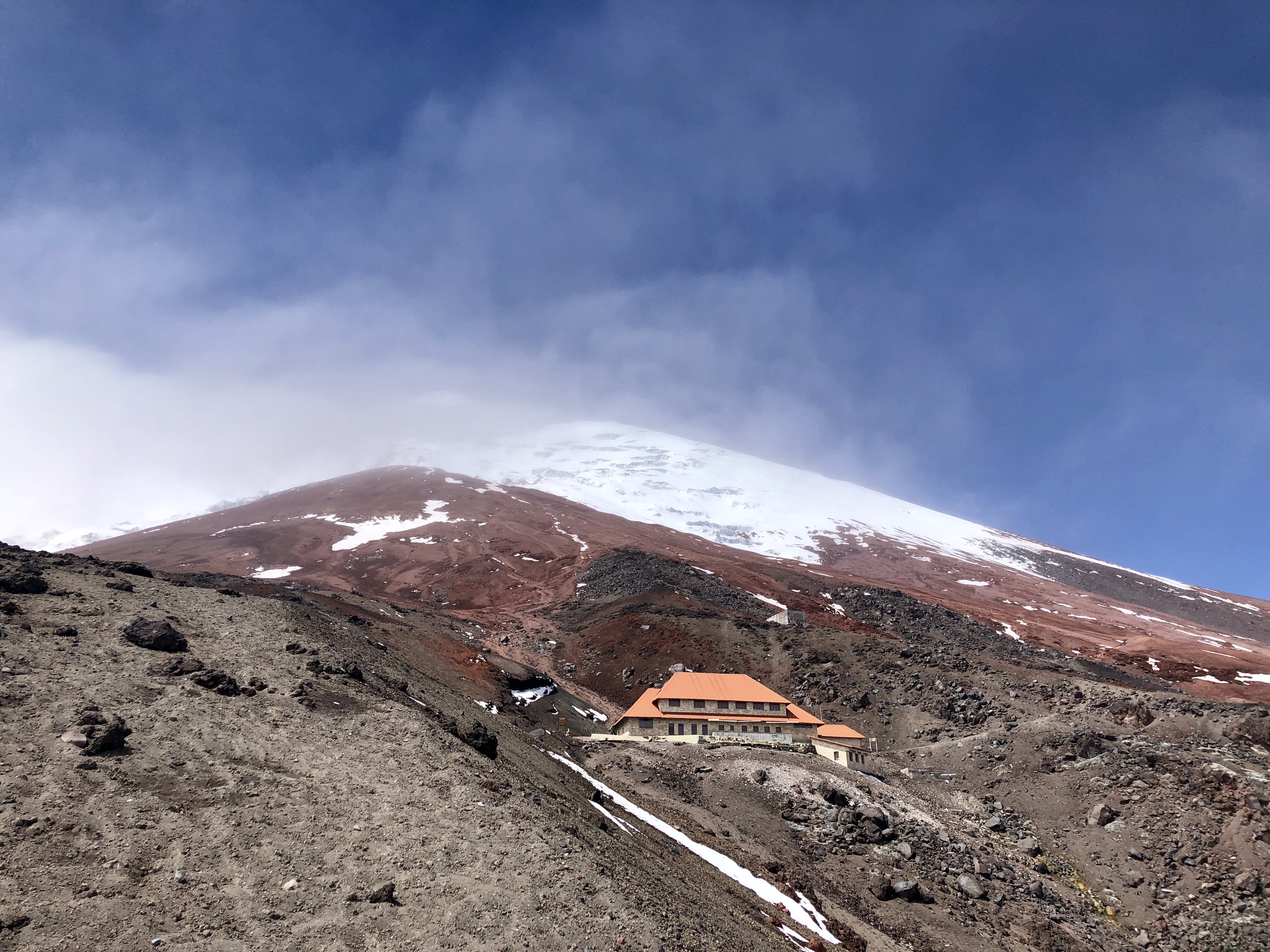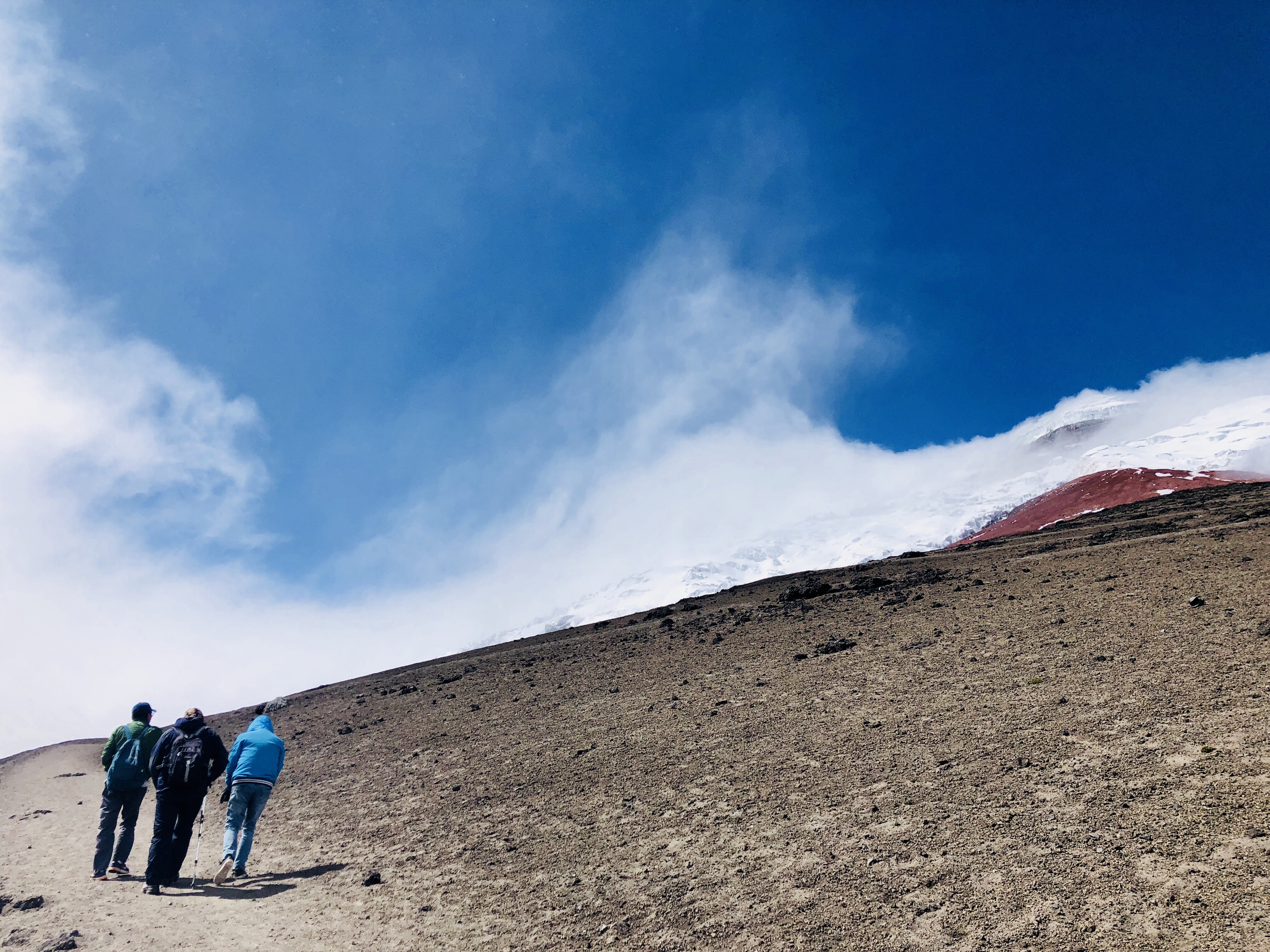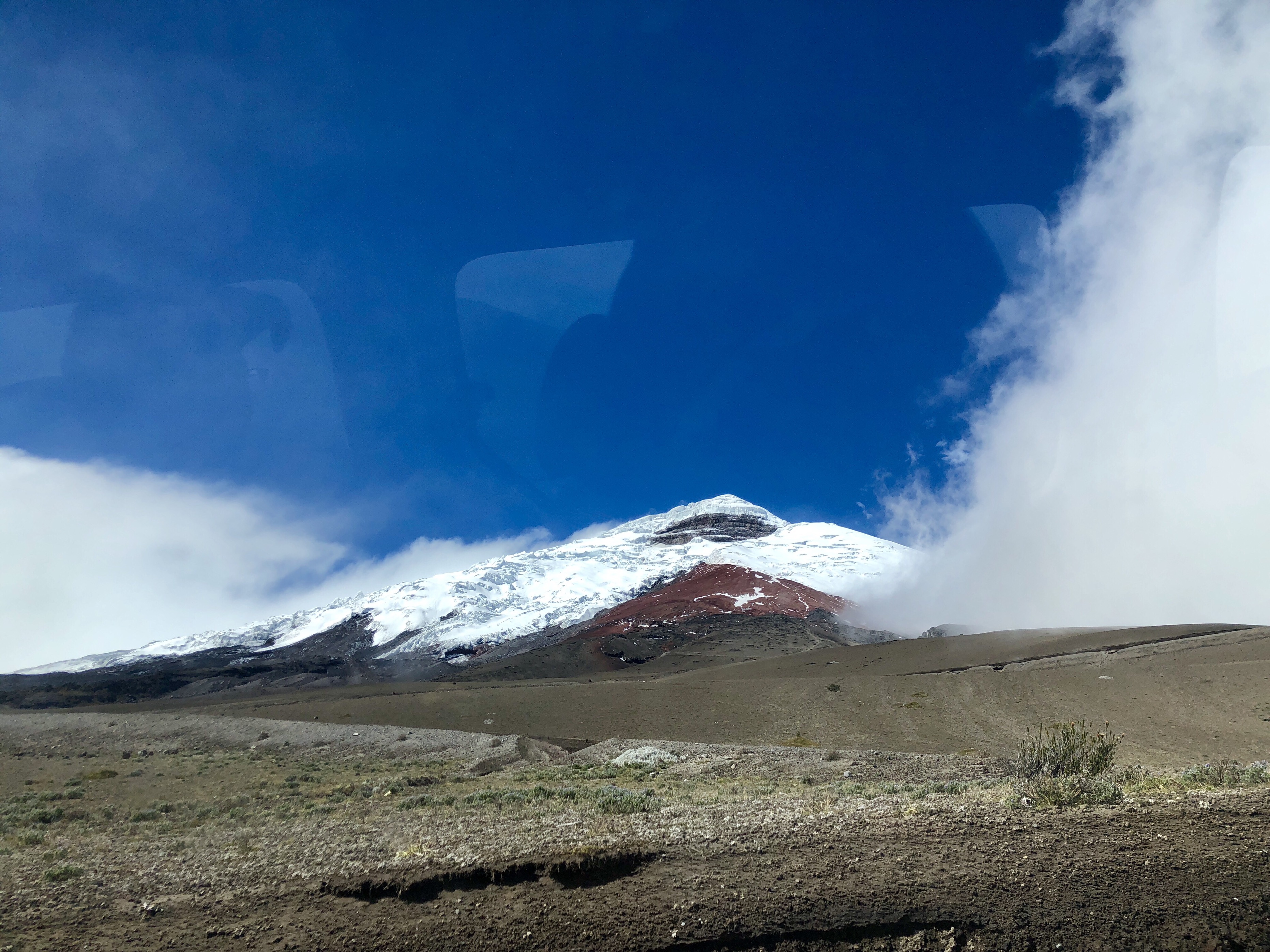멀리 눈 덮인 산봉우리를 갖춘 콕토팍시 활화산을 마주하게 됩니다.