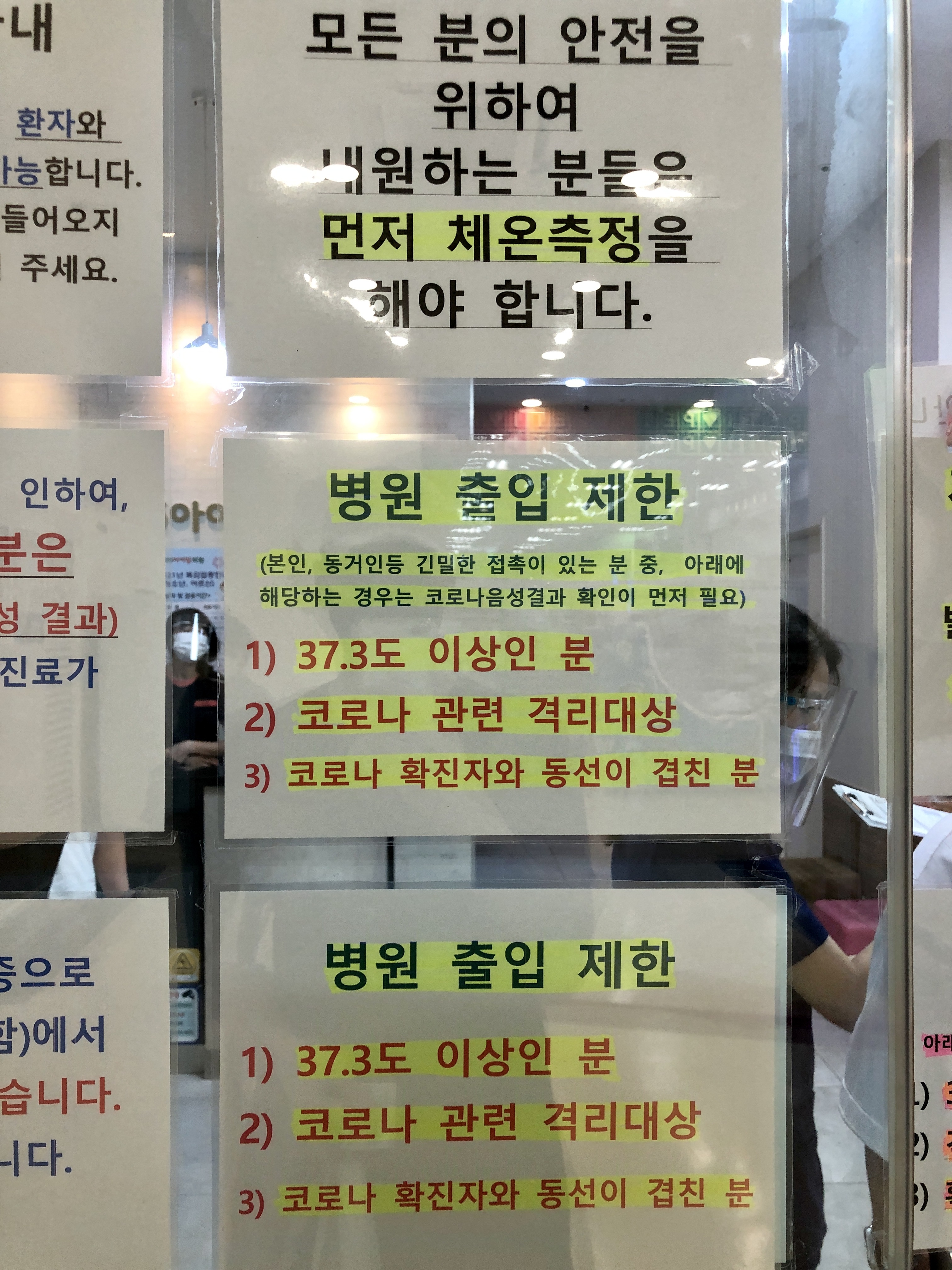 처음 병원에 도착하면 문 앞에서 간호사님의 질의에 응답 후 병원 출입 가능 대상일 경우에만