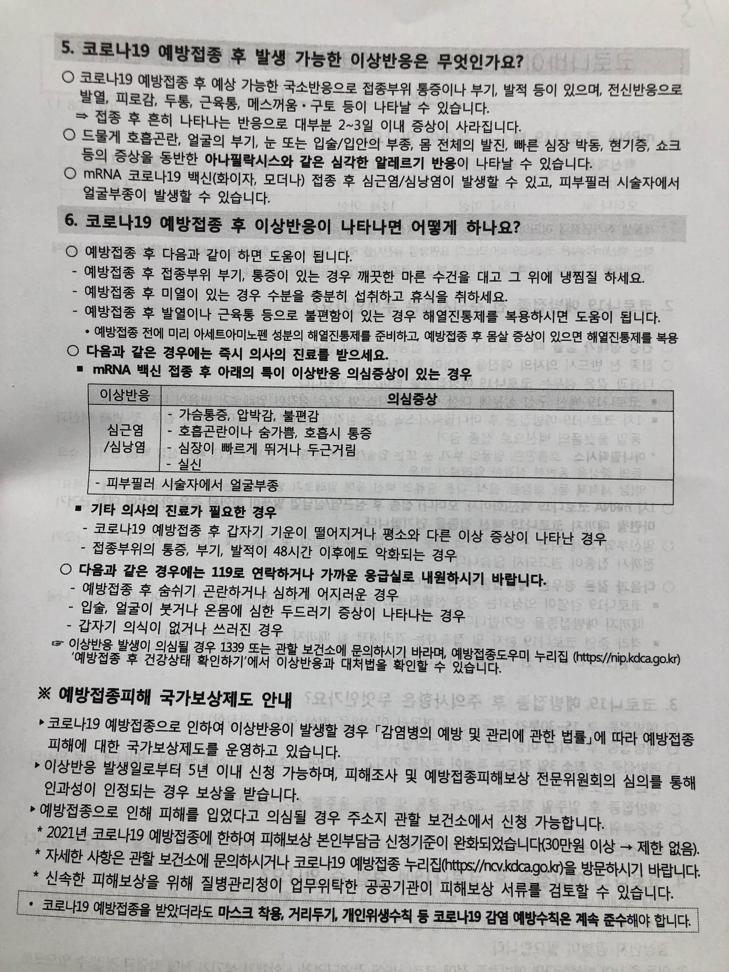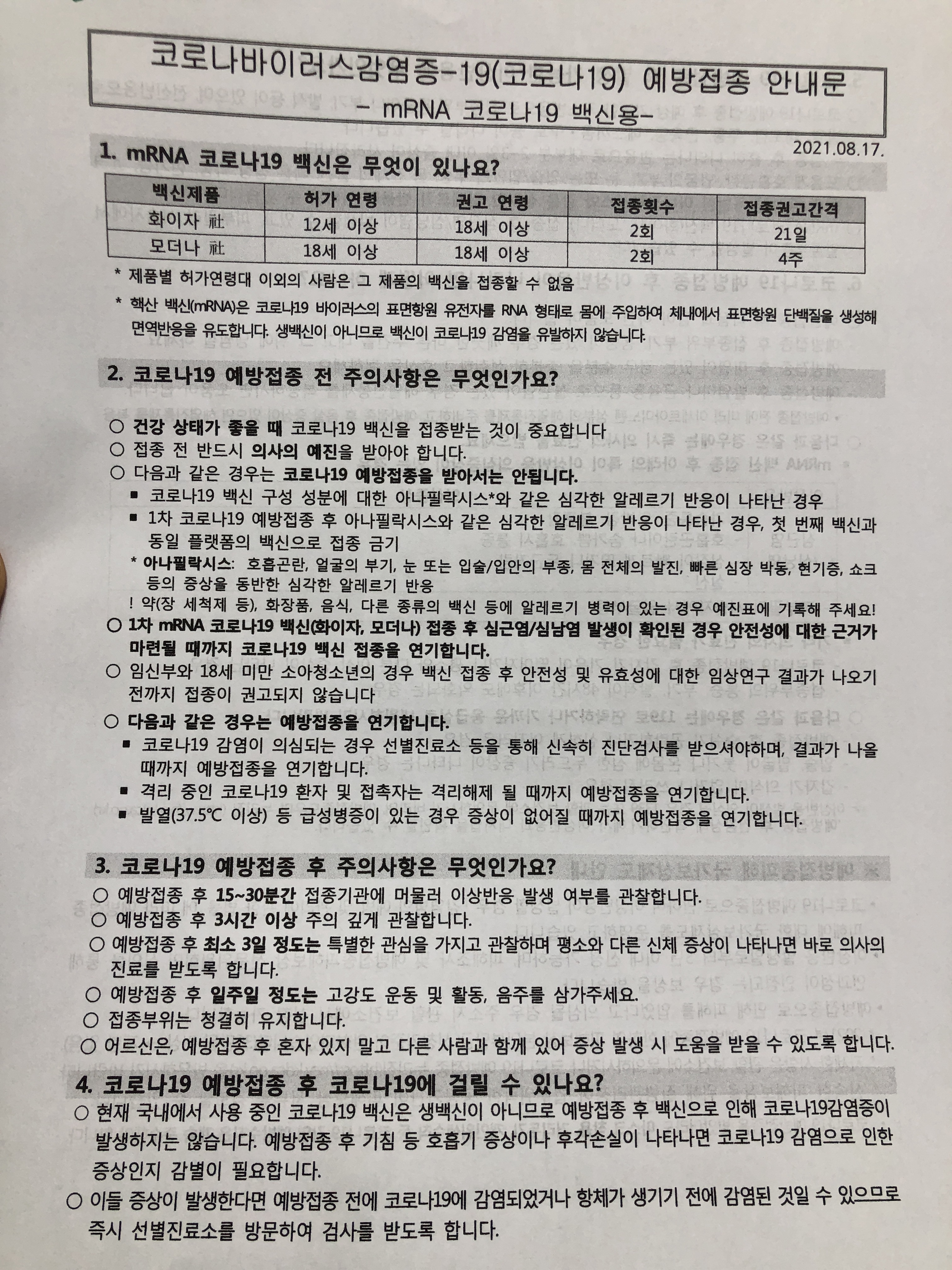 백신 예방접종의 주의사항과 코로나19 예방접종 후 하지말아야 할 사항들에 대해 안내받게 됩니다.