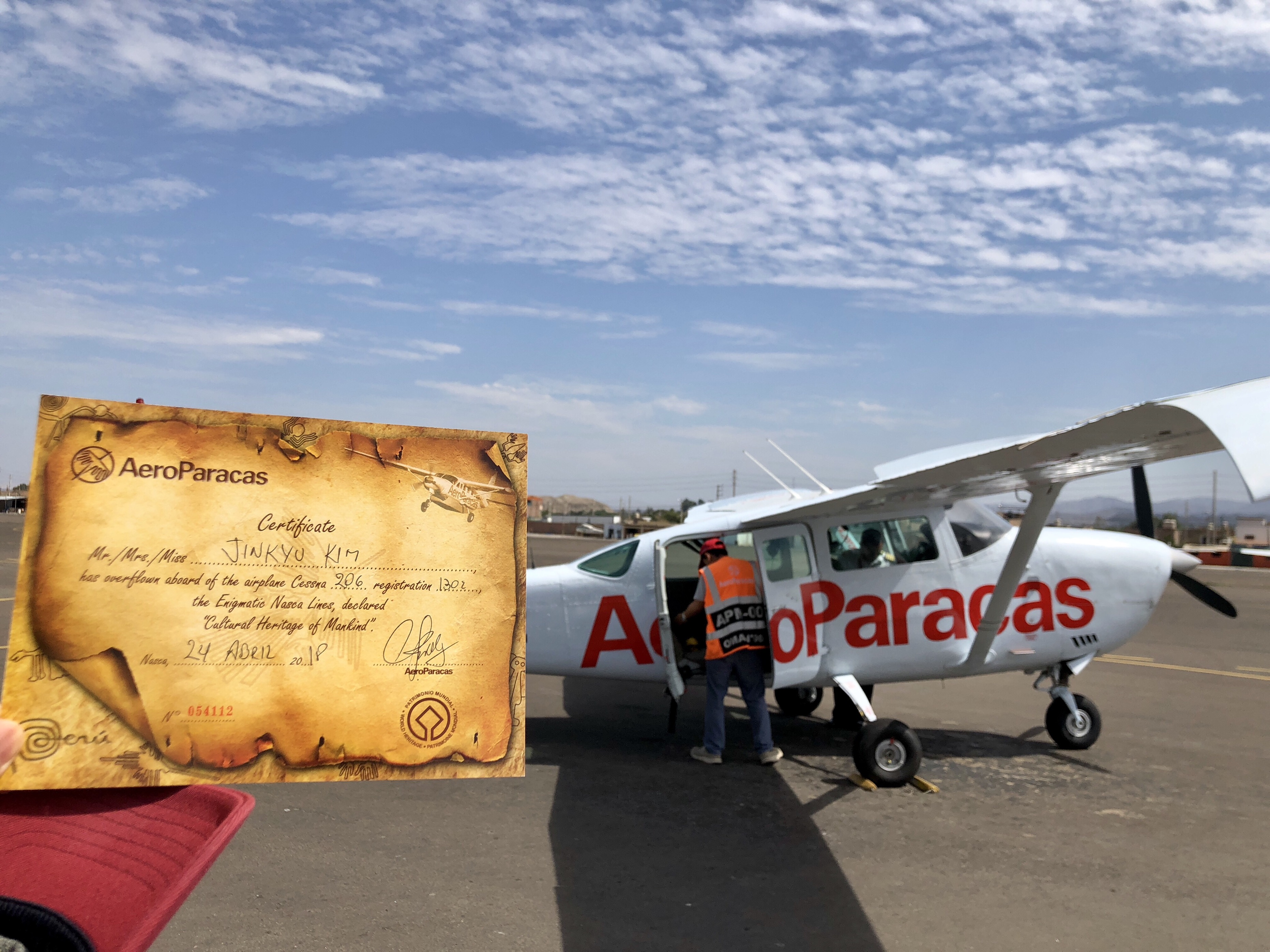 투어가 끝나면 나스카라인을 여행했다는 증명서를 날짜와 함께 이름을 써서 줍니다.