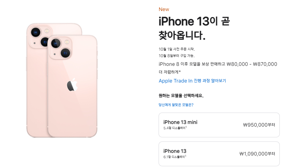 이번 iPhone13 모델은 한국이 생각보다 빠르게 10월초 출시예정이라고 하여