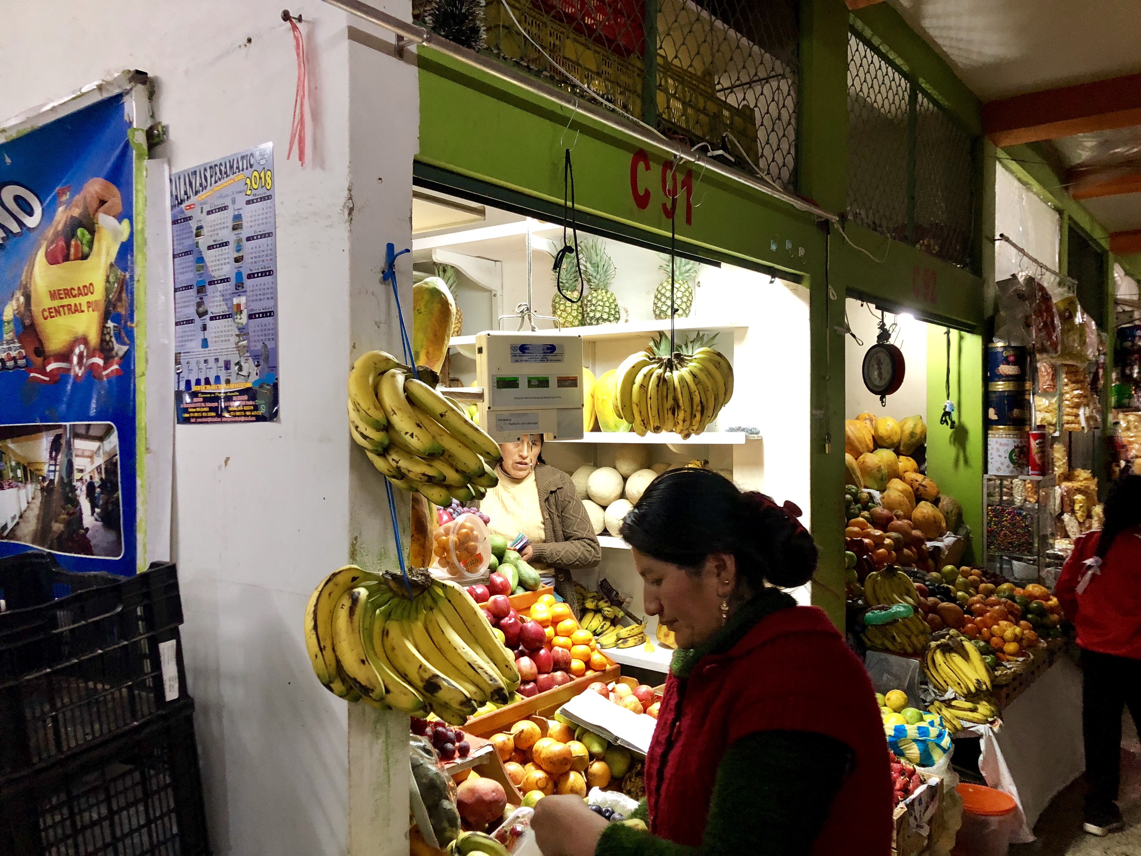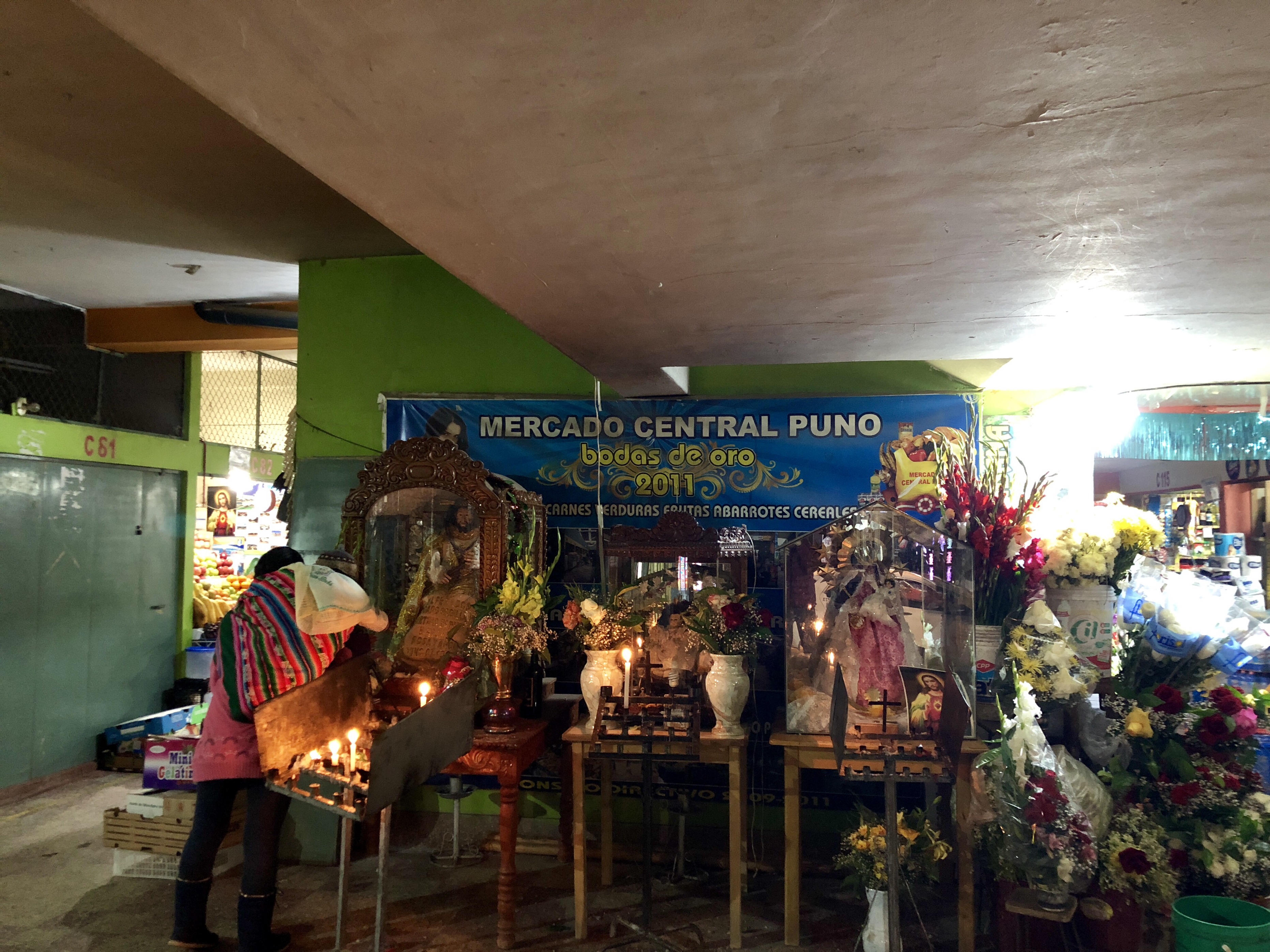푸노 중앙 시장은 꽃과 음식 과일 채소 야채 등등 많은 상품을 취급하고 있었습니다.