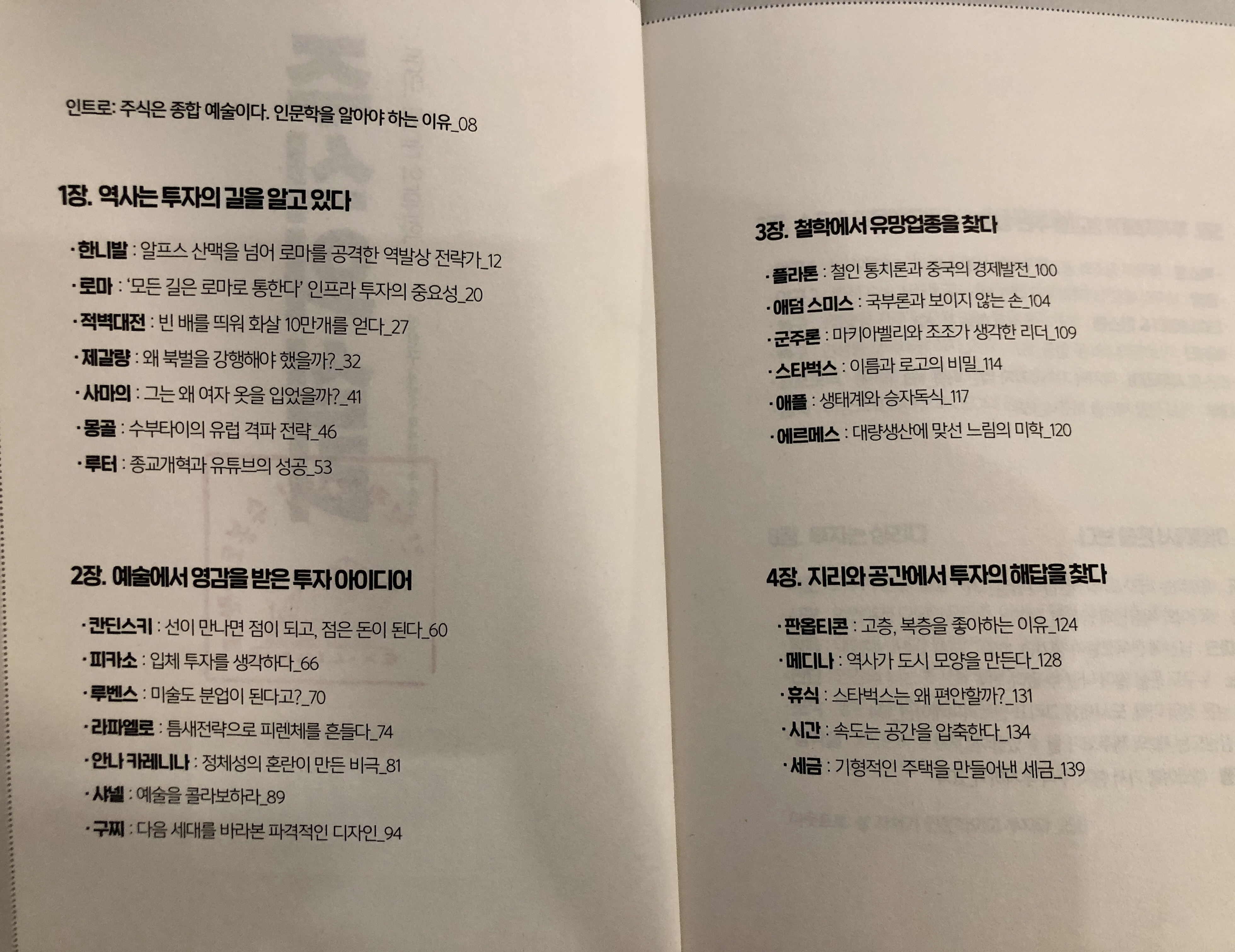 역사, 예술, 철학, 지리와 공간, 영화, 여행, 스포츠 등 여러가지 우리 일상과 세상사에서 투자를 배우려