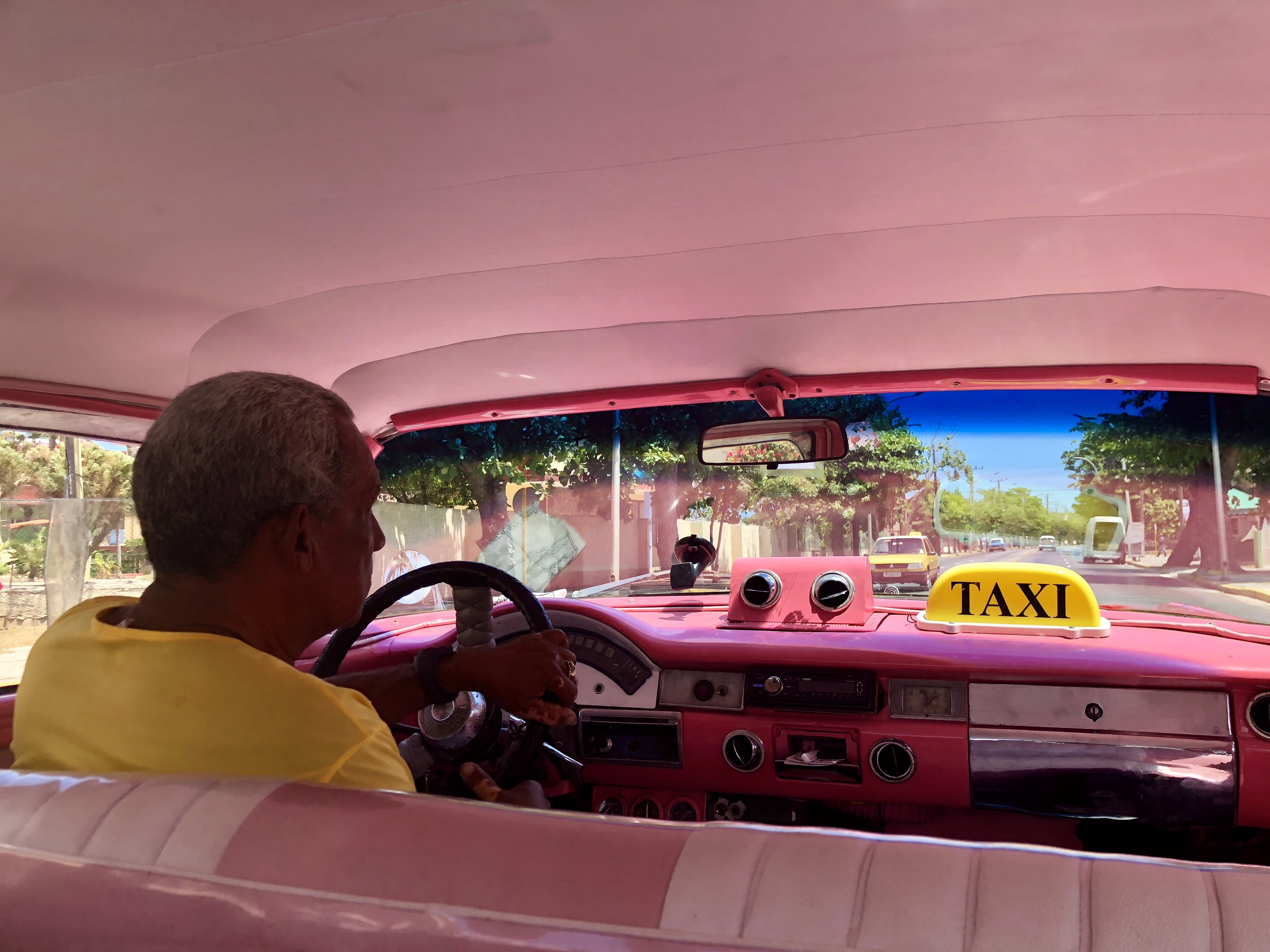 여자들이 매우 좋아할 핑크핑크한 올드카 택시가 잡혔다.