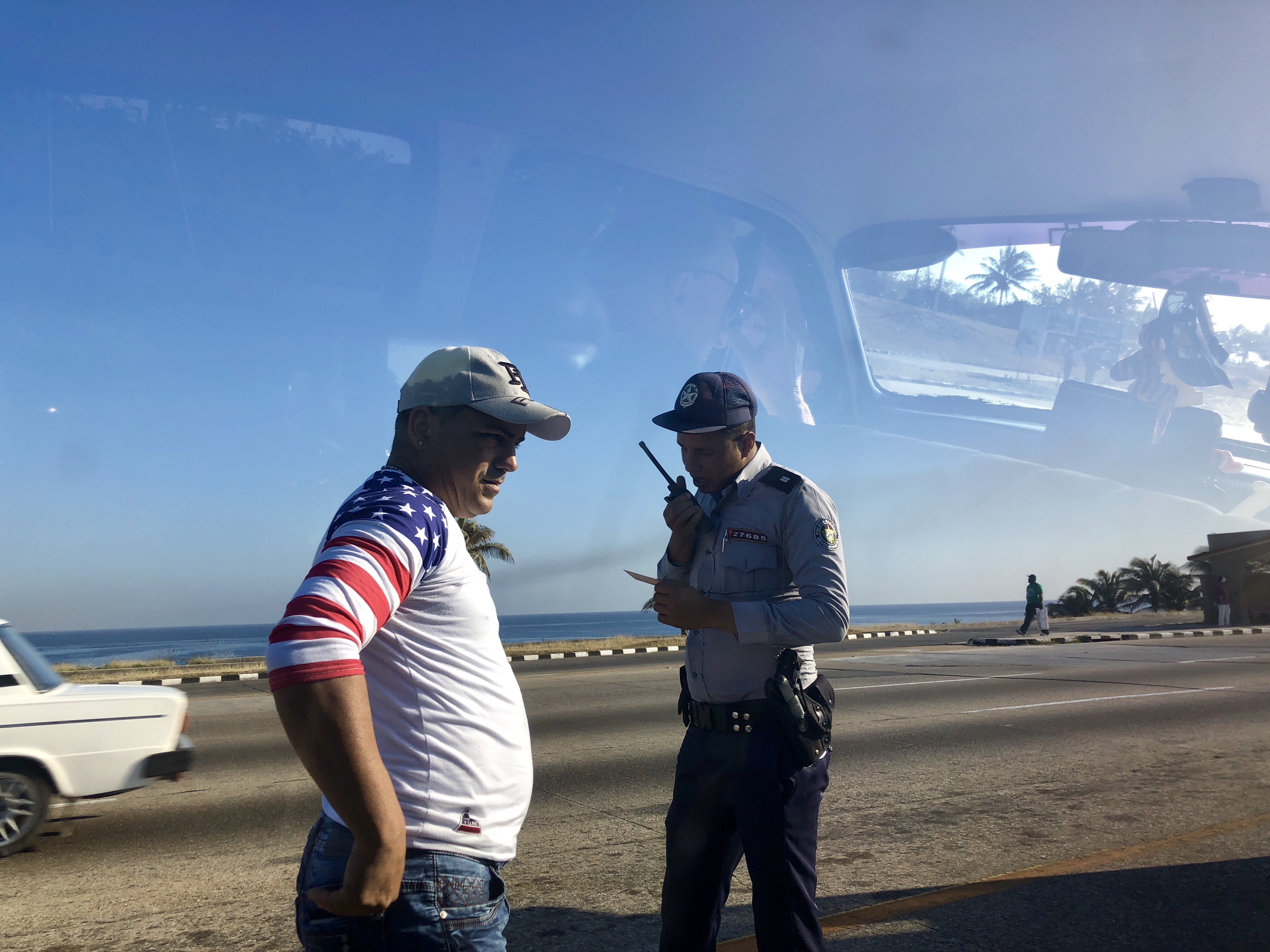라 아바나 시를 벗어날때 내려서 면허증을 제시하고 저렇게 검사를 받아야 통과할 수 있나보다.