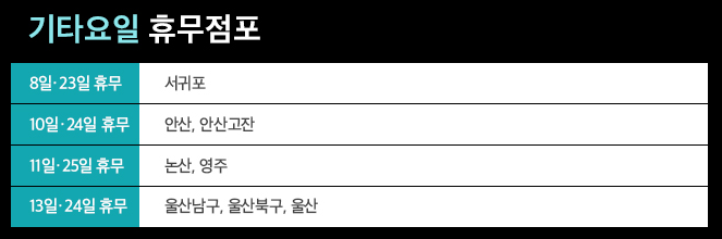 • 13일, 24일 휴무 - 울산남구, 울산북구, 울산