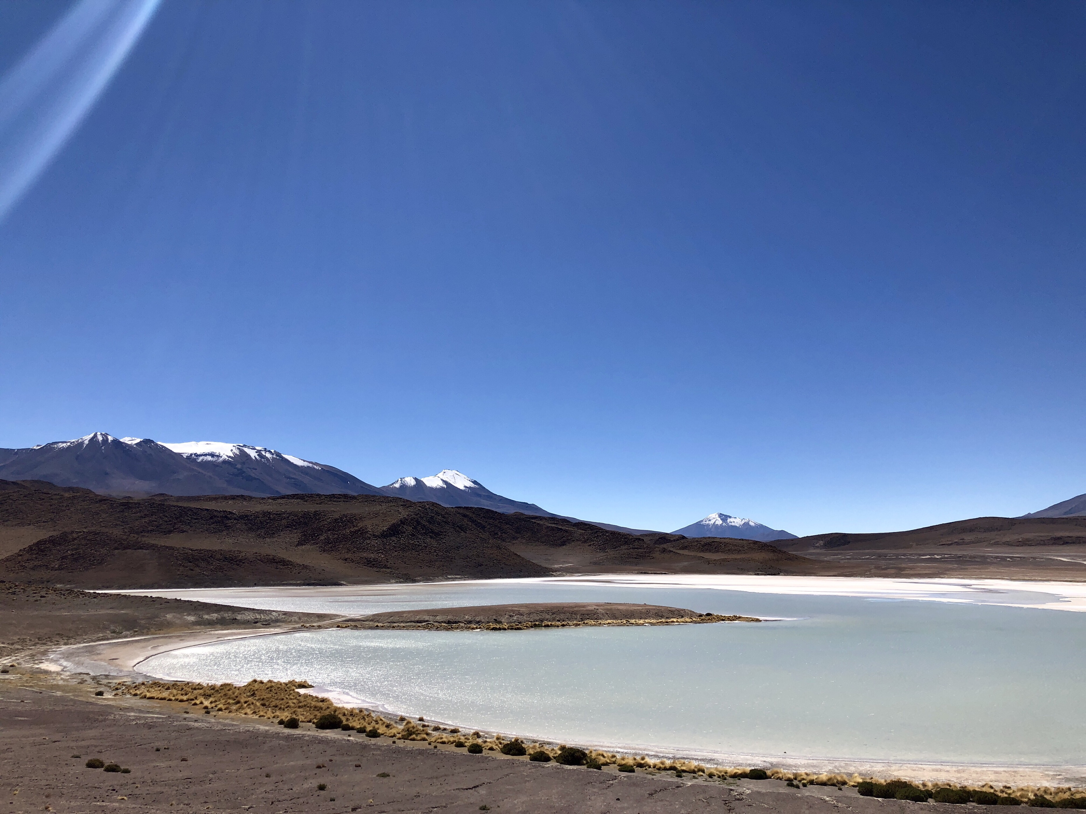 본격적인 사막 로드트립을 하기 전에 영롱한 빛의 온다호수에 잠시 들러 멀리 눈덮인 산을 바라봅니다.