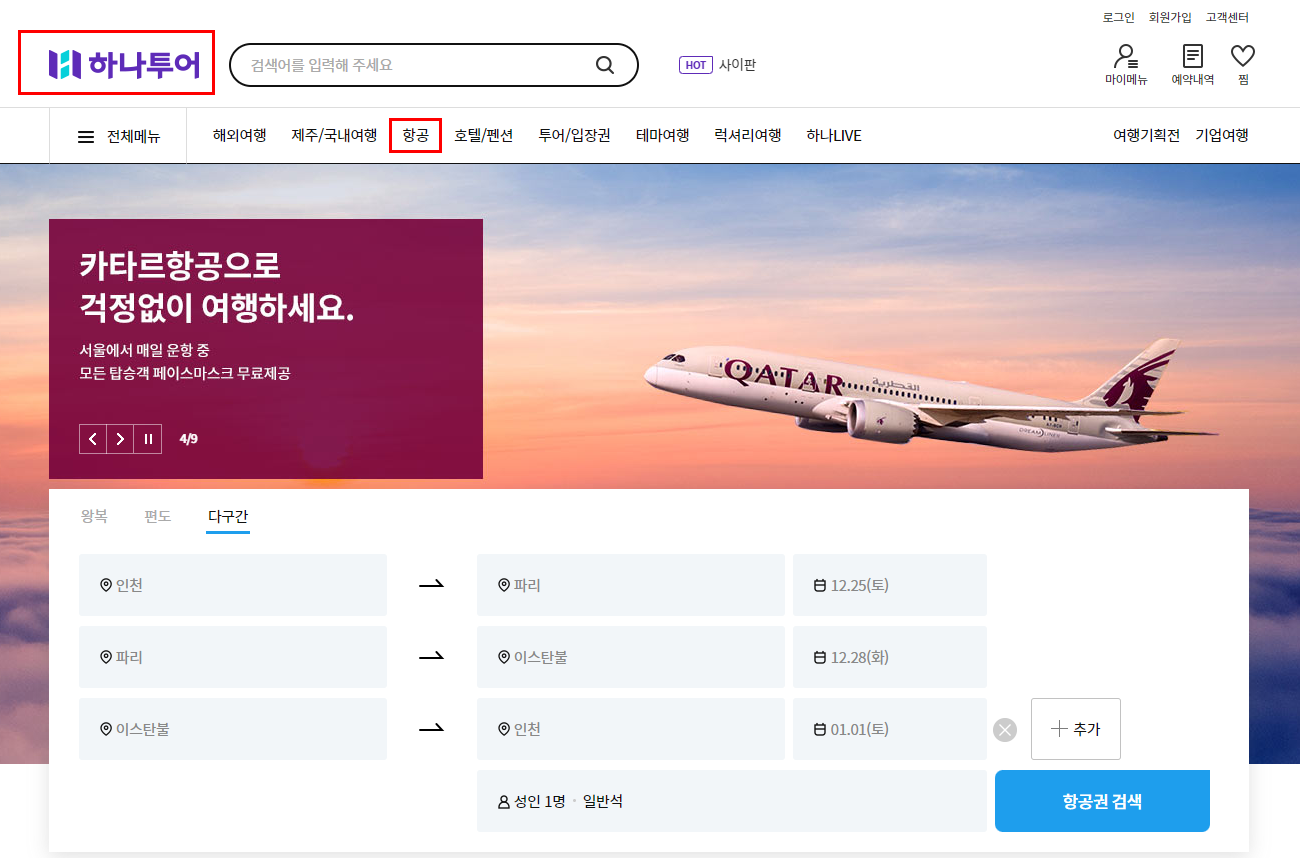 이 항공권을 국내 1등 여행업체인 하나투어를 이용해서 발권하게 되었습니다.