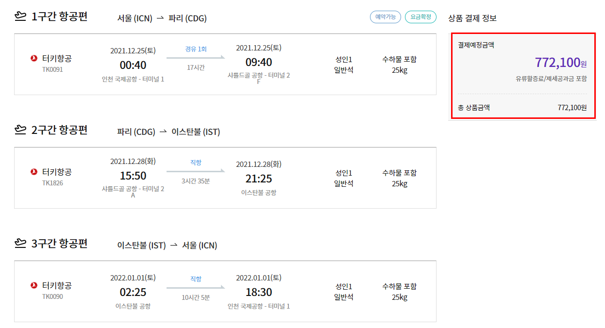 우선 저는 이번 크리스마스 파리와 연말 터키여행 항공권을 터키항공을 이용하게 되었으며,