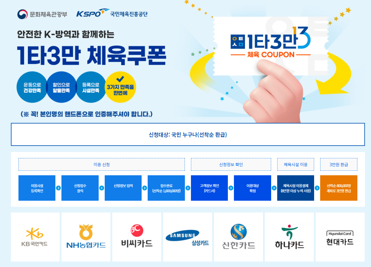 1타3만 체육쿠폰은 안정한 K-방역과 함께하며 문화체육관광부와 국민체육진흥공단 주관으로