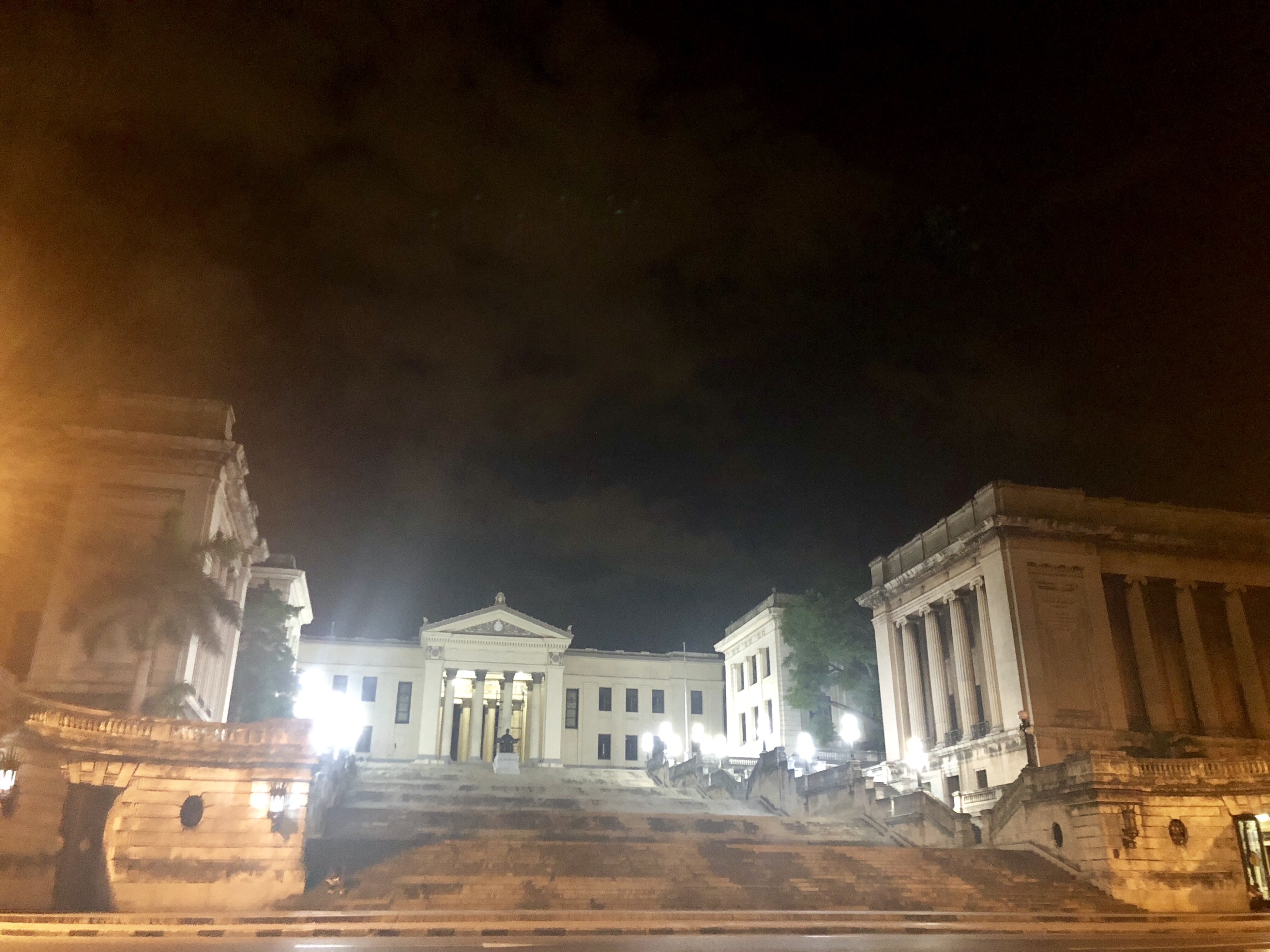 숙소까지 천천히 밤거리를 걸어오니 불켜진 아바나 대학교를 또 만난다.